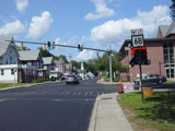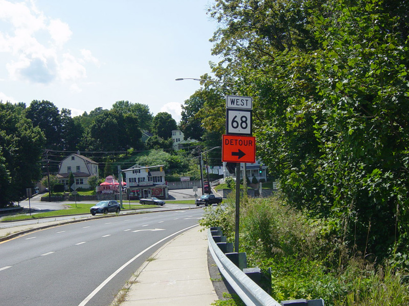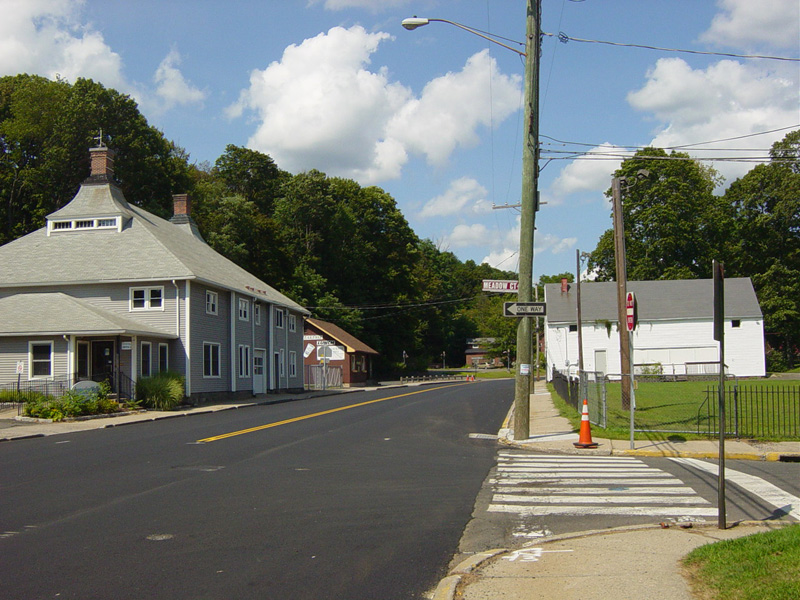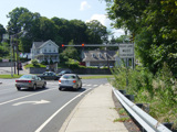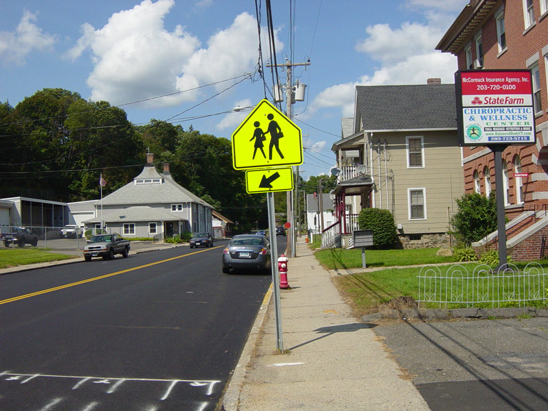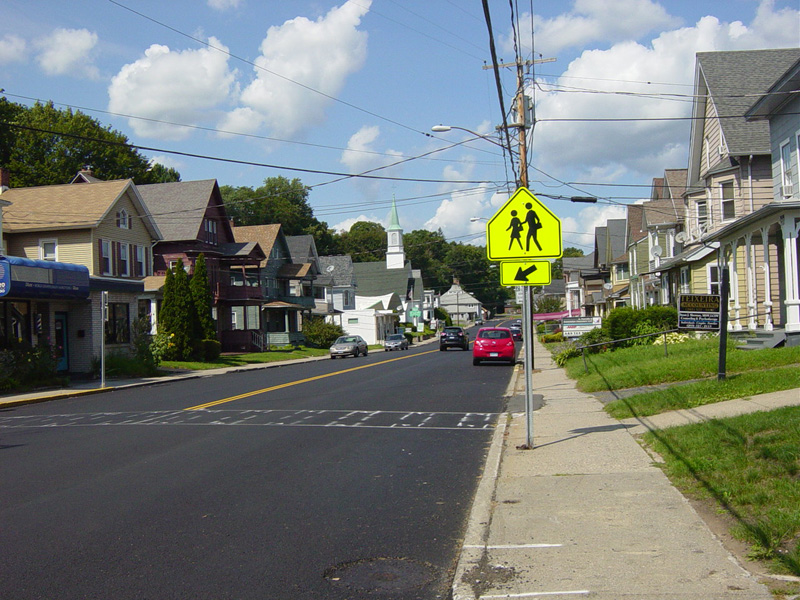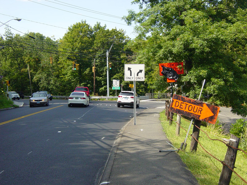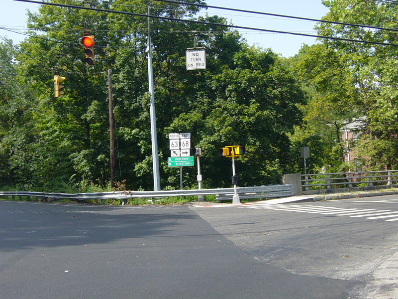 Bridge Street (CT 68) begins on the right at a traffic light. Bear left to stay on Church Street.