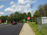 CT 42 is multiplexed with CT 63 along Amity Road for one block. It splits off to the right at the traffic light onto Cheshire Road. Continue straight ahead on Amity Road to stay on CT 63.