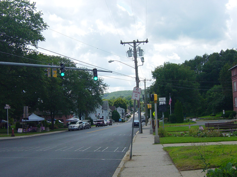 Meadow Street ends at a traffic light at Rubber Avenue. Continue straight ahead onto Cherry Street to stay on CT 63.