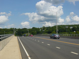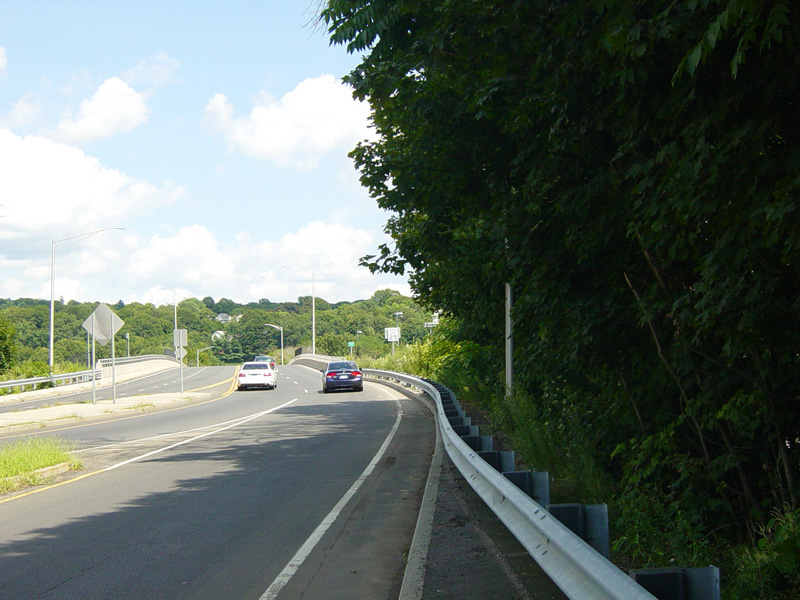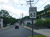 Cherry Street splits off to the right to become a local street. Bear left to stay on CT 63.
