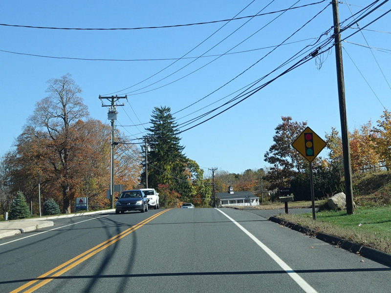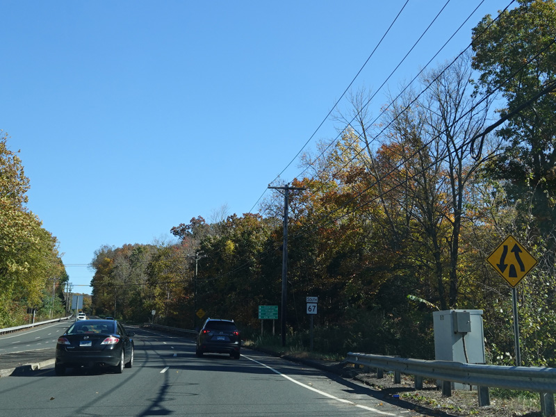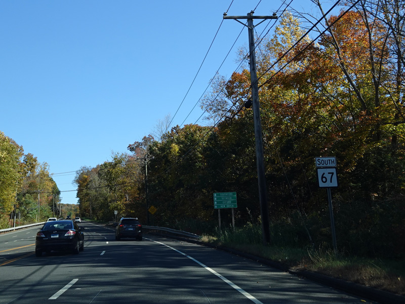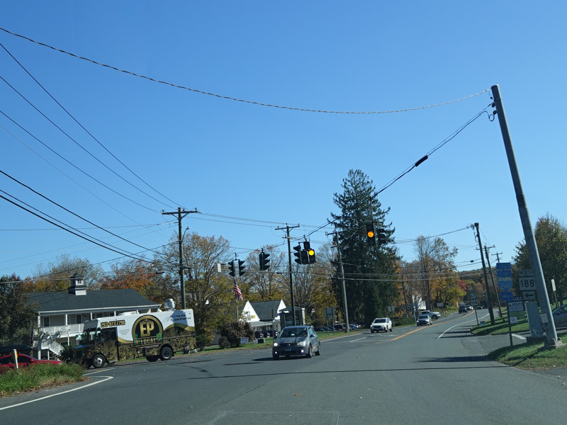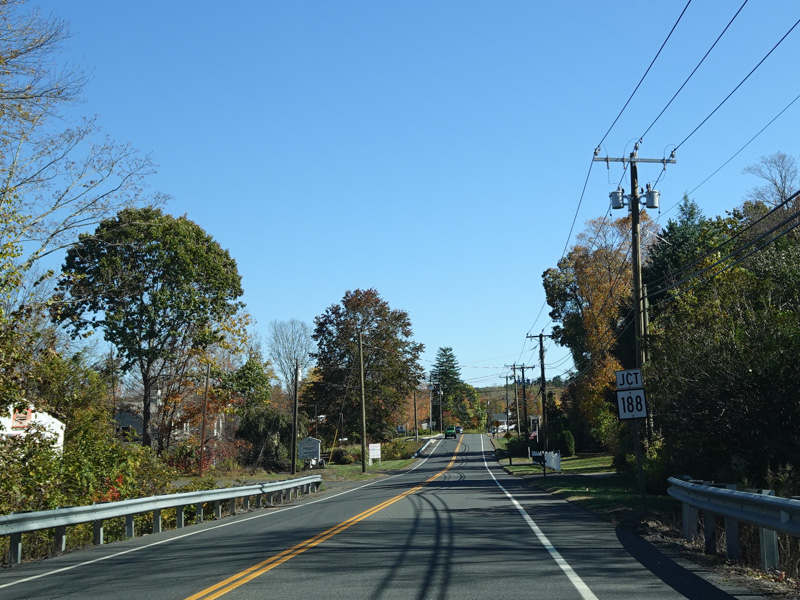 There is a traffic light at Strongtown Road (CT 188). Turn left to go north. Southbound CT 188 is multiplexed with CT 67 along Southford Road straight ahead.
