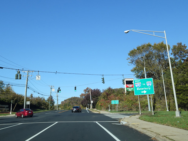 There is another interchange with the CT 9 expressway, and then Hartford Road becomes South East Road. It runs north until just south of the Yankee Expressway (I-84/US 6). There, it curves to the east to become New Britain Avenue, which runs parallel to the expressway for a short distance. Then, CT 71 ends at South Main Street (CT 173). At this intersection, CT 173 turns onto New Britain Avenue, which the section of South Main Street to the south is a local street.