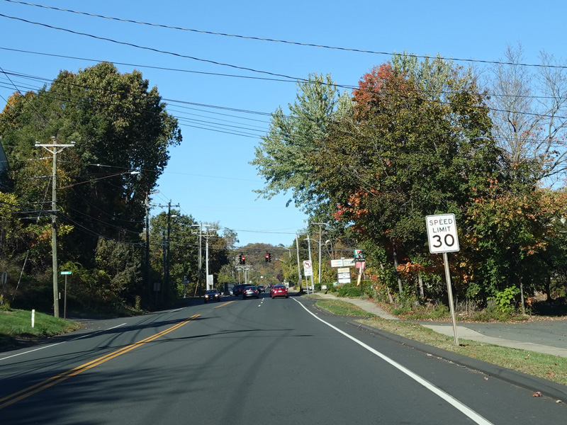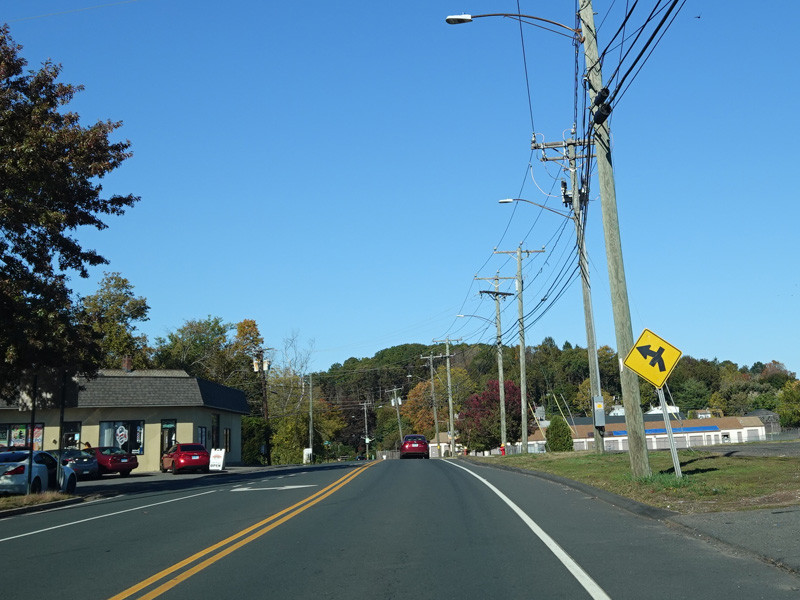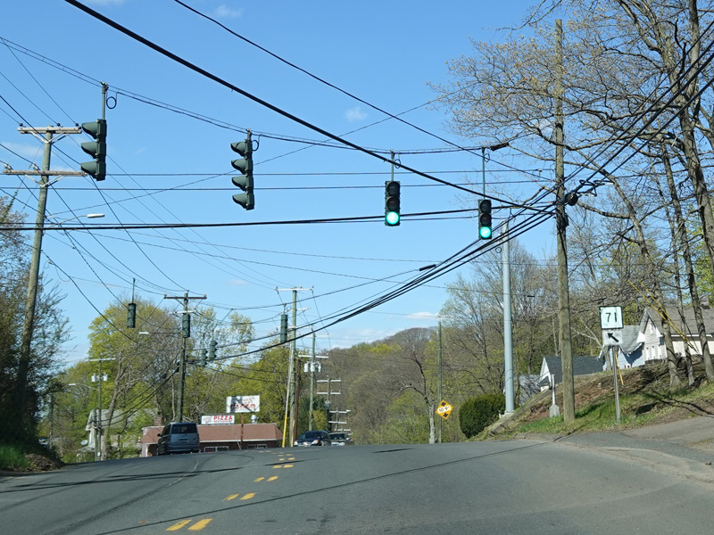Old Colony Road ends here at a traffic light. Colony Street splits off to the right. Bear left onto Cook Avenue to stay on CT 71.