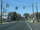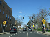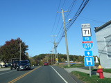 There is a traffic light at Hanover Street. Cook Avenue becomes a southbound one-way street straight ahead. Turn right to stay on CT 71.