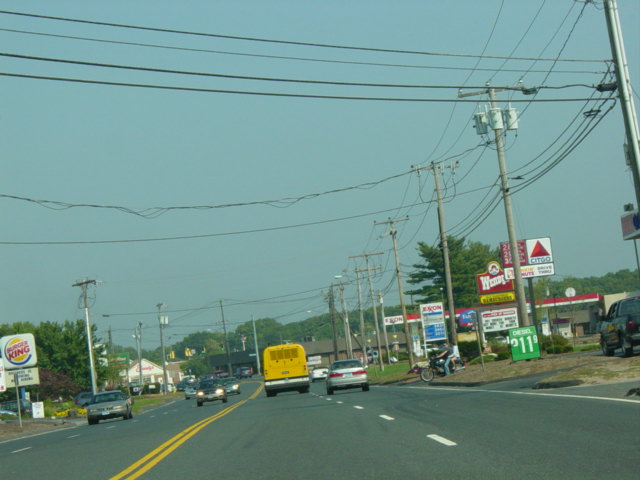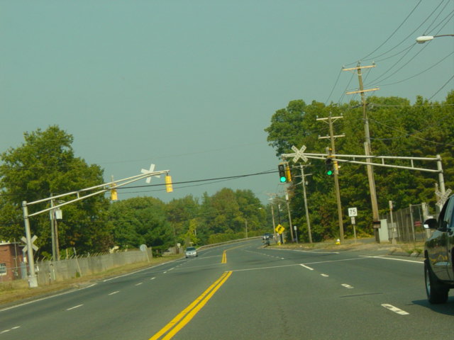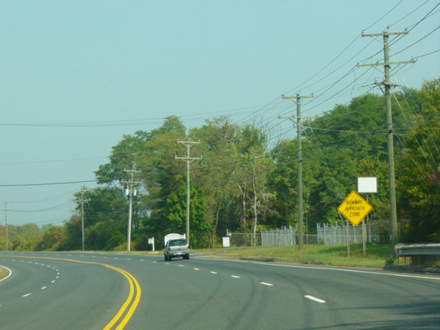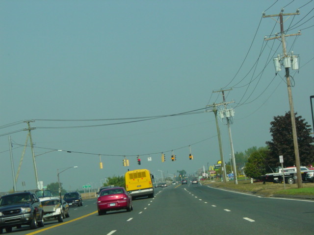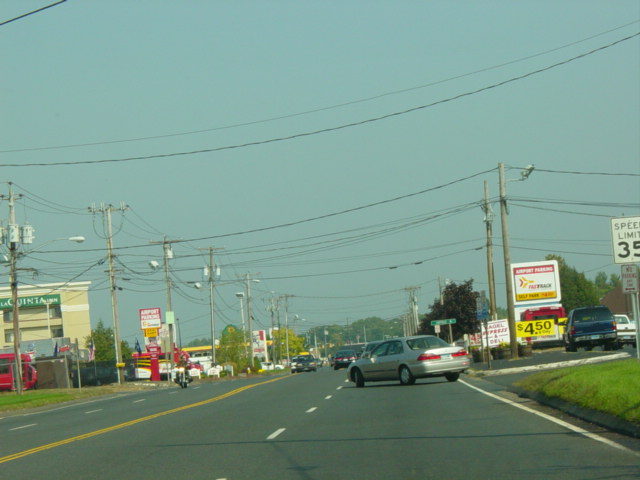 Ella T. Grasso Turnpike runs north through Windsor Locks as a four-lane undivided road. Bradley International Airport is on the left.