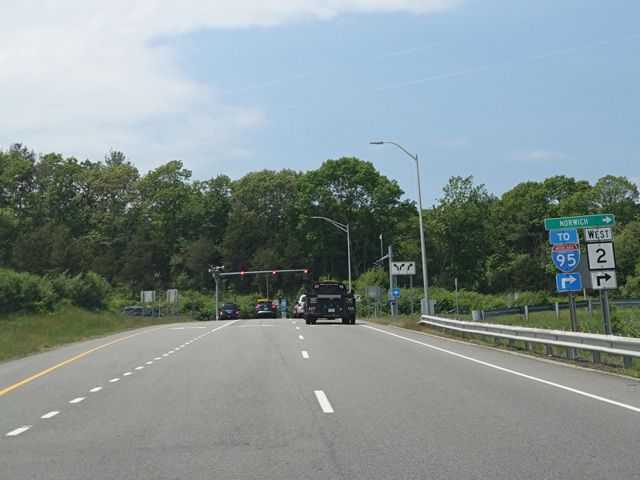 The Westerly Bypass is a short expressway that bypasses the downtown area of Westerly, Rhode Island. It begins at Liberty Street (CT 2) in Pawcatuck, Connecticut. At first, it is designated CT 78, but it immediately crosses a small bridge over the Pawcatuck River to Rhode Island and becomes RI 78.