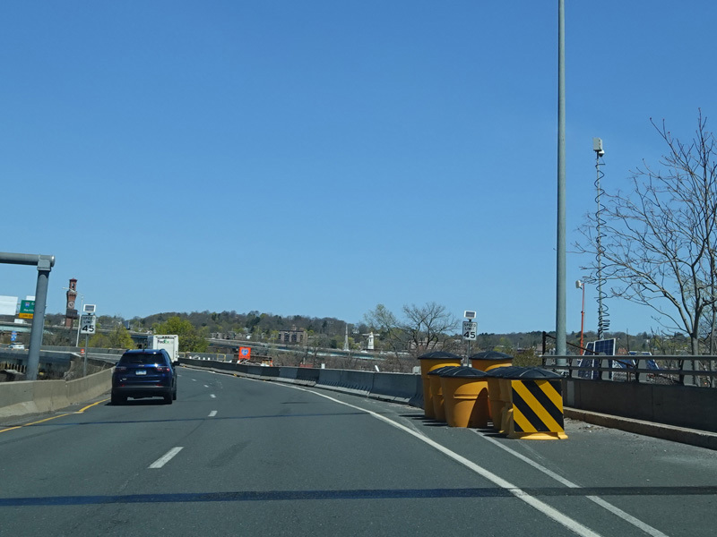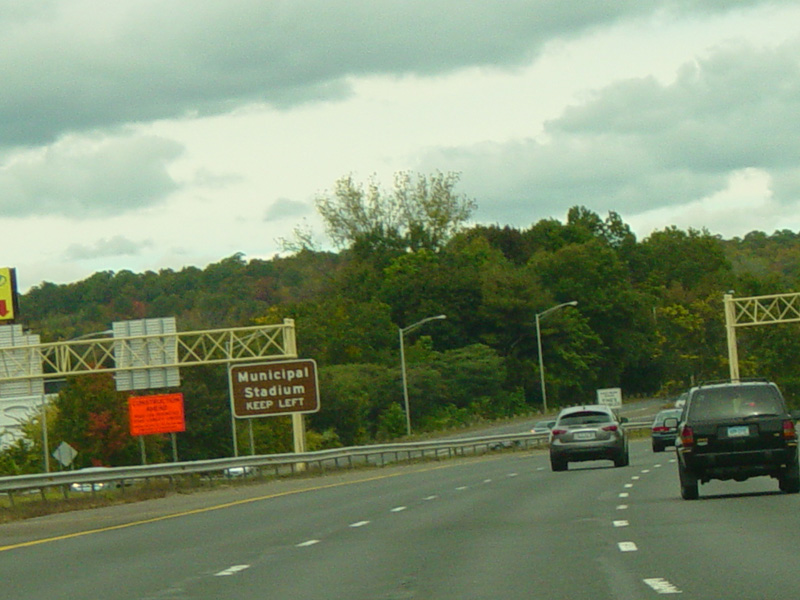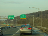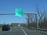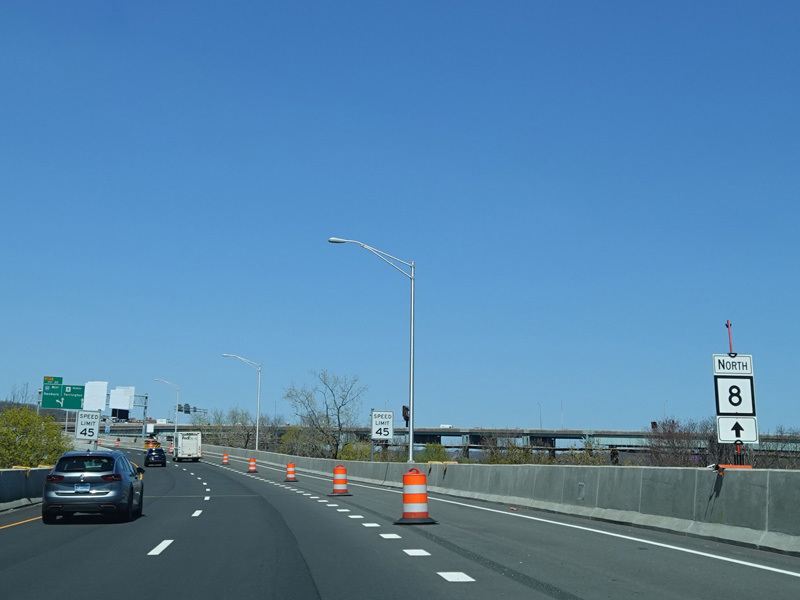 These pictures show CT 8 north at exit 35 as it appeared before construction work began to rebuild the interchange with the Yankee Expressway (I-84).