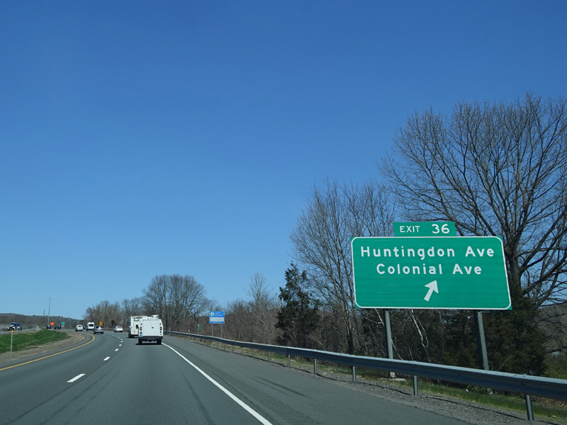 Exit 36 is for Huntingdon Avenue and Colonial Avenue.