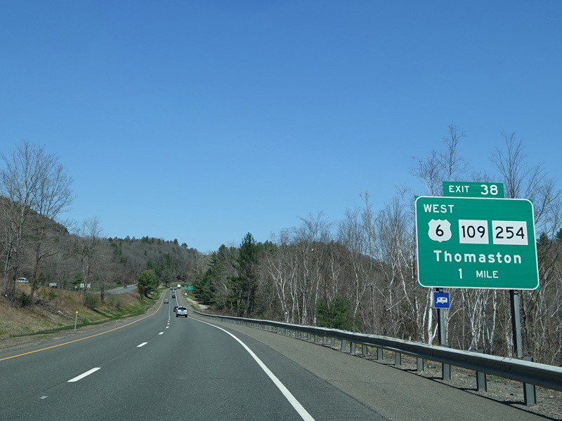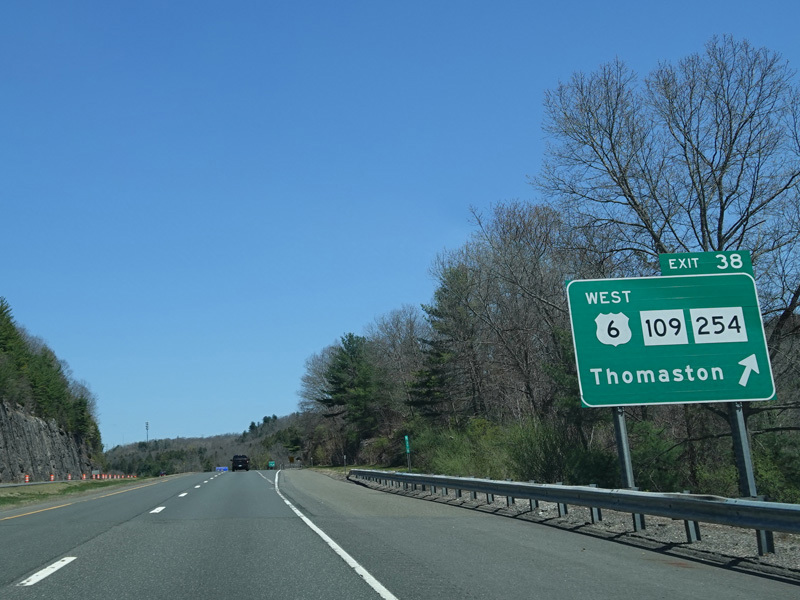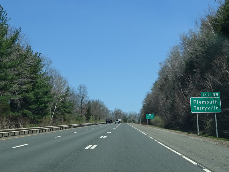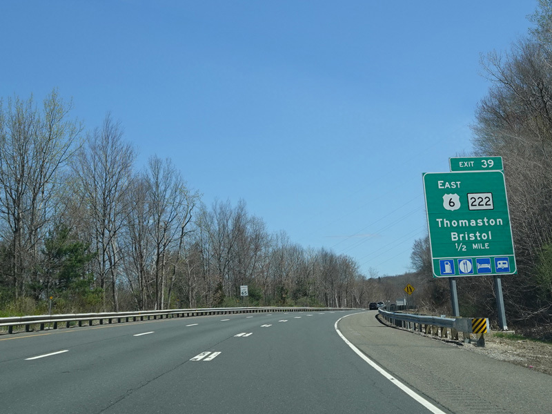 Eastbound US 6 is multiplexed with CT 8 for one exit here. Exit 39 is for