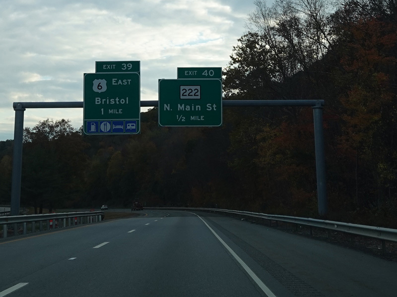 Exit 44 is for East Elm Street (CT 4) and East Main Street (US 202).