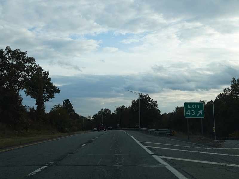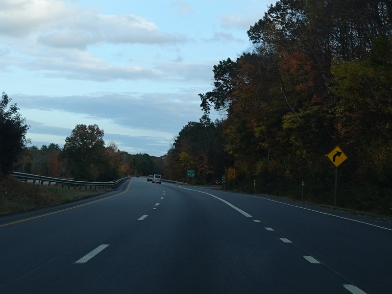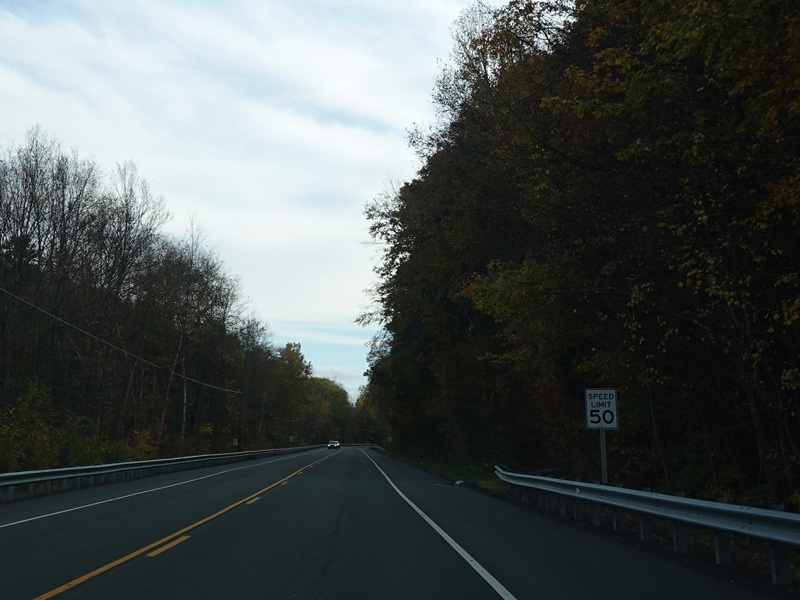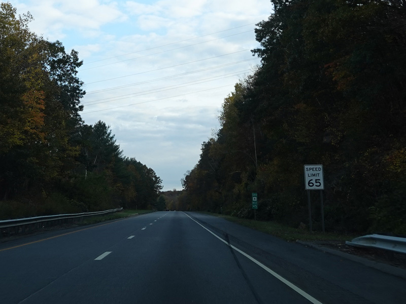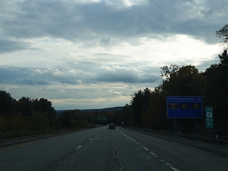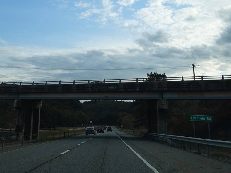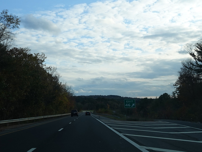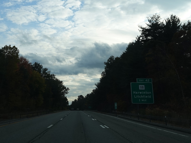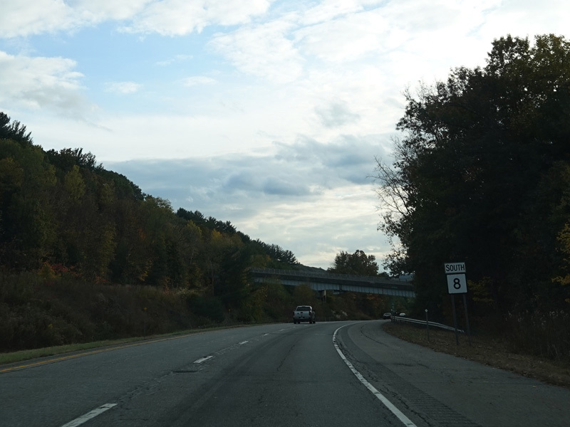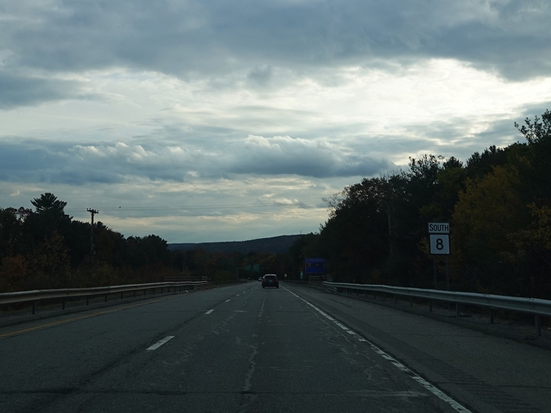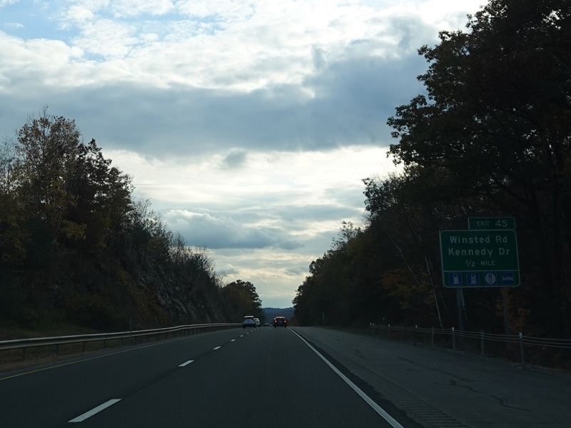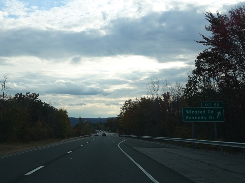 CT 8 splits off from US 44/CT 183 to become an expressway for the remainder of its length. Exit 46 is for Pinewoods Road.