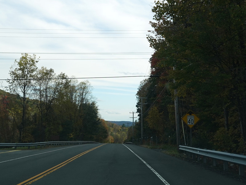 The speed limit drops to 40 MPH. Colebrook River Road continues to the south.
