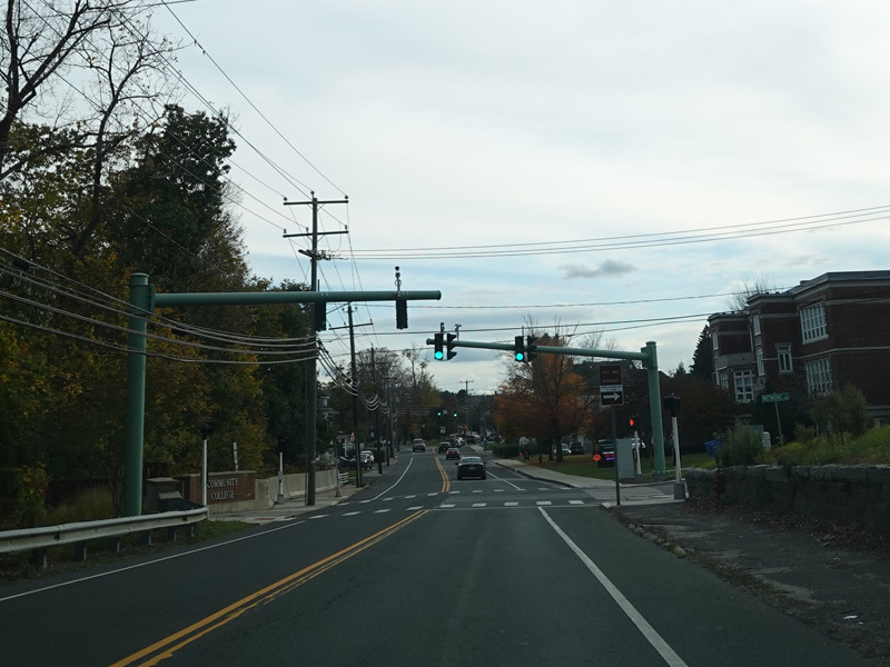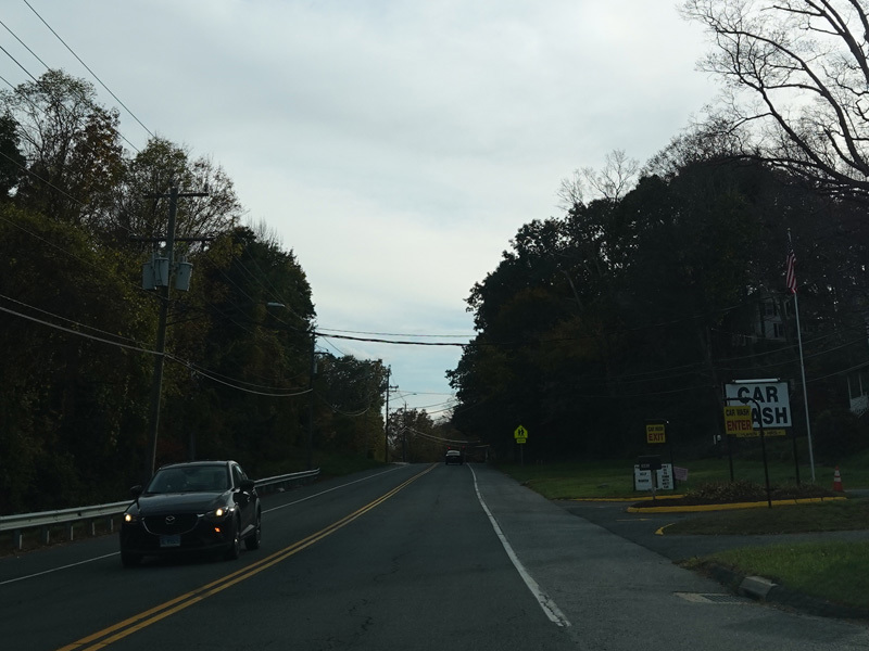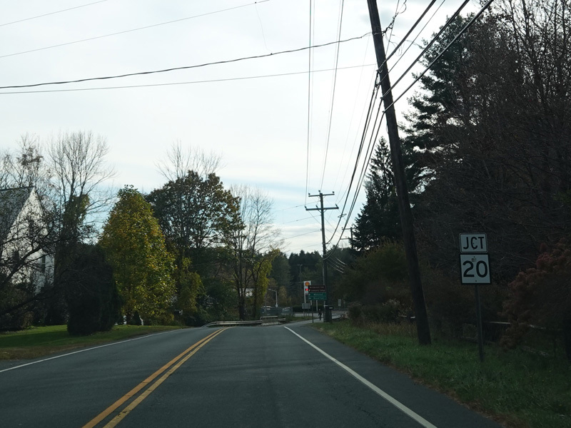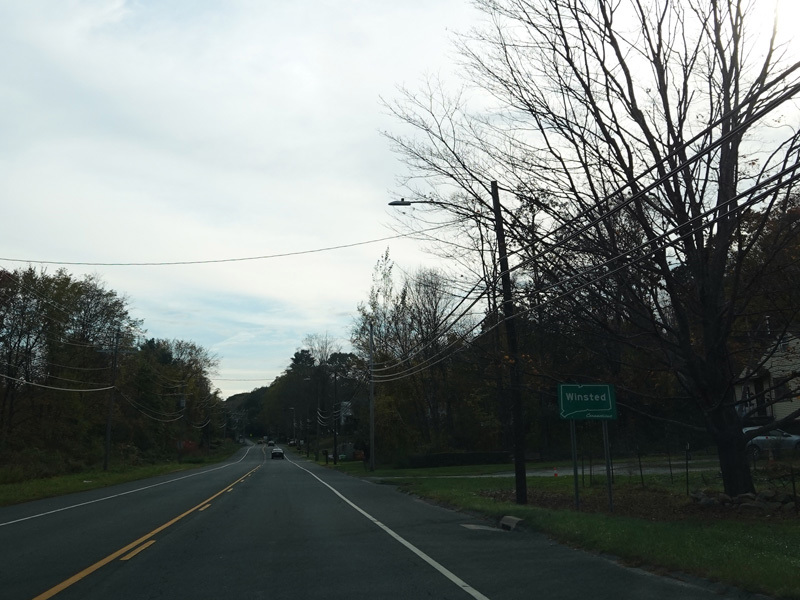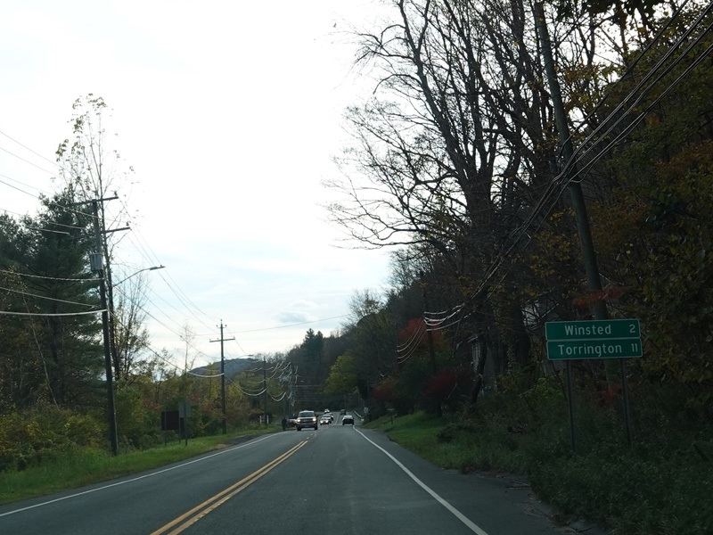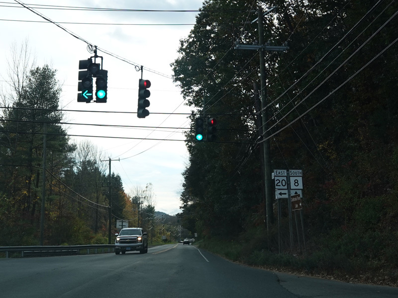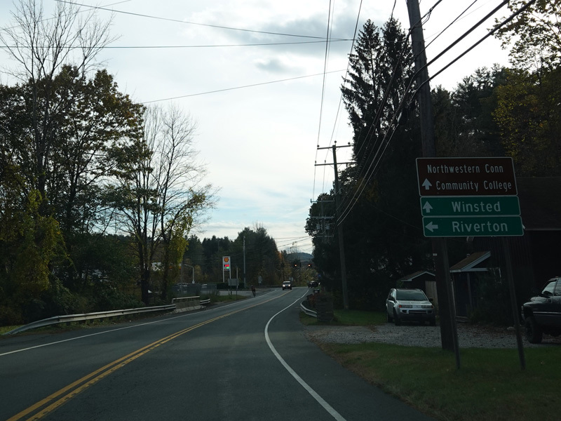 Riverton Road (CT 20) begins on the left at a traffic light. This is the first traffic light in over 20 miles!