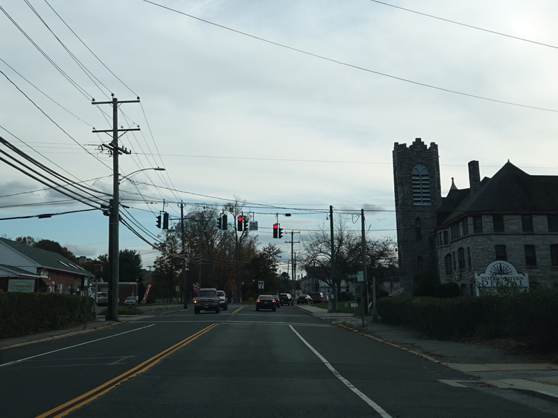 CT 8 is follows Main Street (US 44/CT 183) for a few blocks to the southeast.
