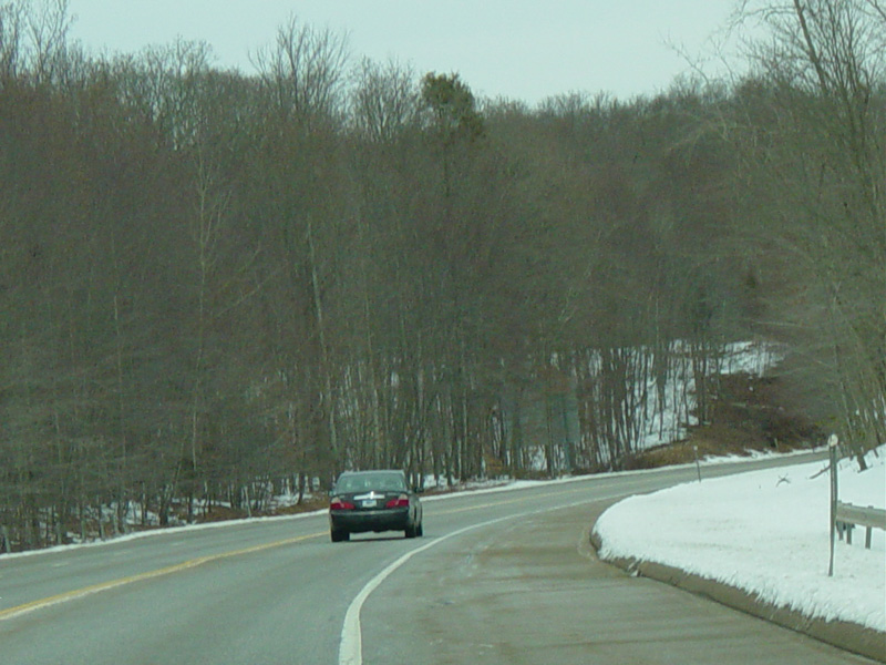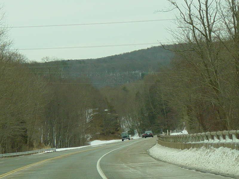 CT 82 begins at the CT 9 expressway in Chester. The first section is a super-3, a three-lane undivided highway was no at-grade intersections. There are cliffs on both sides of the road.