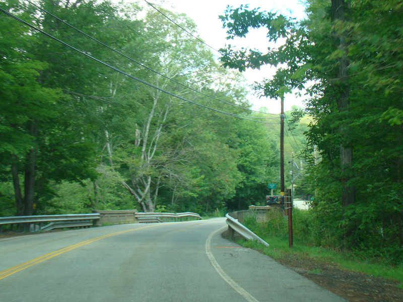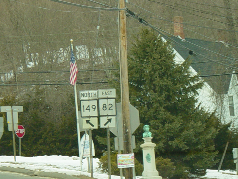 On the other side of the bridge, the road splits. Bear left for Main Street (CT 149). Bear right to stay on CT 82.