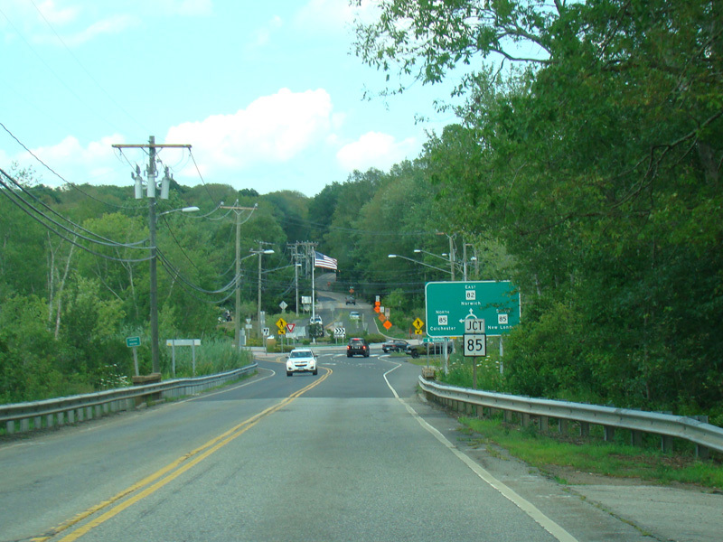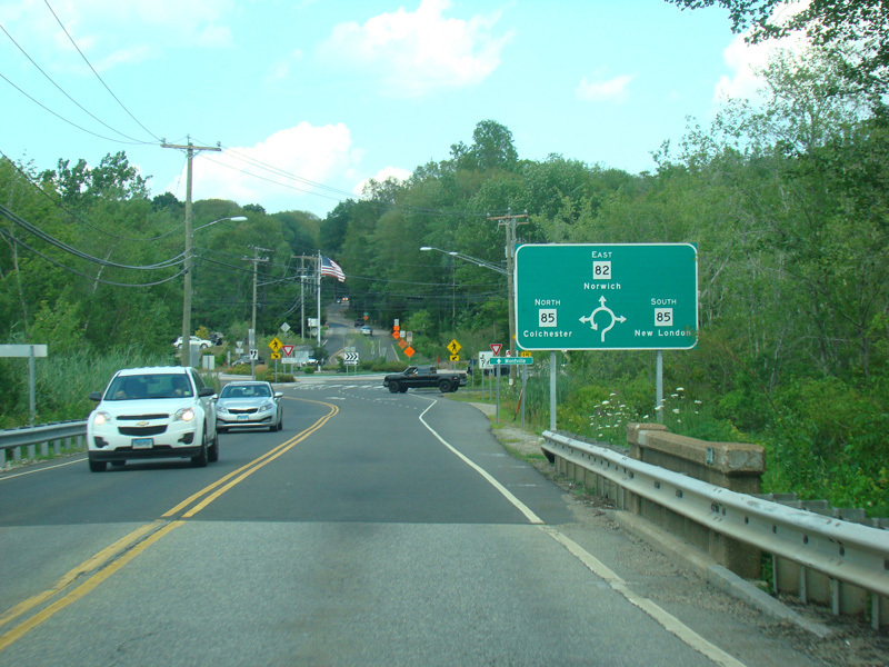There is a traffic circle at CT 85. Turn left onto Hartford Road to go north or left onto New London Road to go south. Continue straight ahead onto Norwich Road to stay on CT 82.