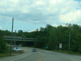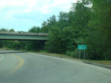 The CT 11 expressway has its southern terminus here. The overpasses here are unused and inaccessible but would have been part of the expressway if it had been extended further south. Just past the overpasses, there is an entrance on the left to go north. There is a second eastbound lane while passing through the interchange.