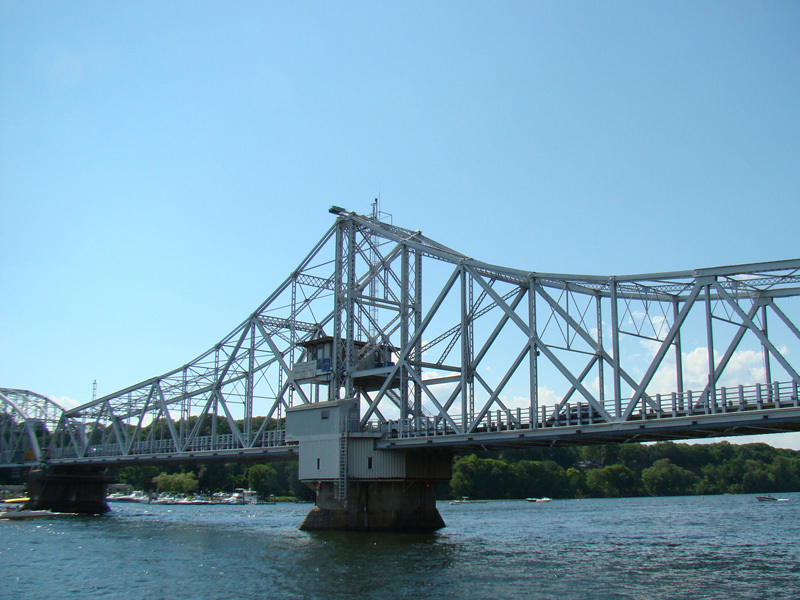 These pictures show the East Haddam Bridge as observed from the waterfront in East Haddam.
