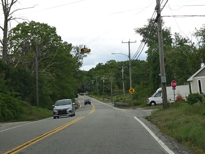 In East Haddam, there is a stop sign. Main Street (CT 149) begins on the right.