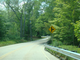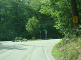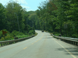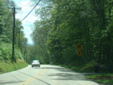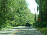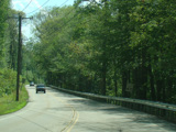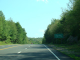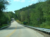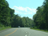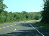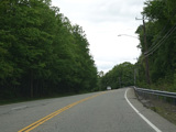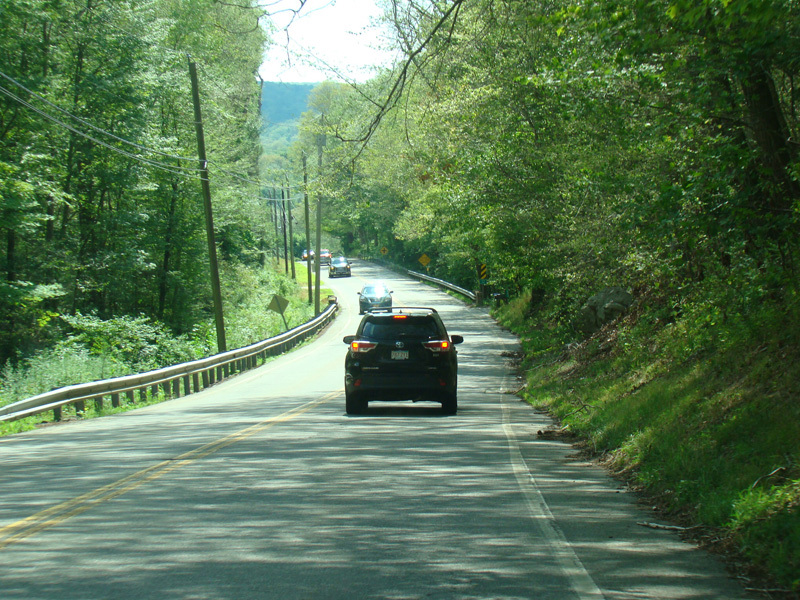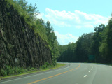 The westernmost section of CT 82 is a super-3, a three-lane undivided highway with no at-grade intersections. There are cliffs on both sides of the road.