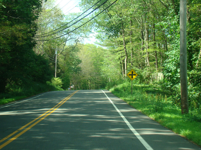 Parum Road (CT 354) merges in from the right at a stop sign. Continue straight ahead to stay on CT 85. There is no route signage at this intersection.