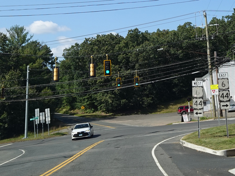 Bolton Center Road ends at a traffic light at US 6/US 44. Turn right onto Boston Turnpike to go east or left onto New Bolton Road to go west. Cider Mill Road (SR 533) begins straight ahead.