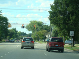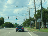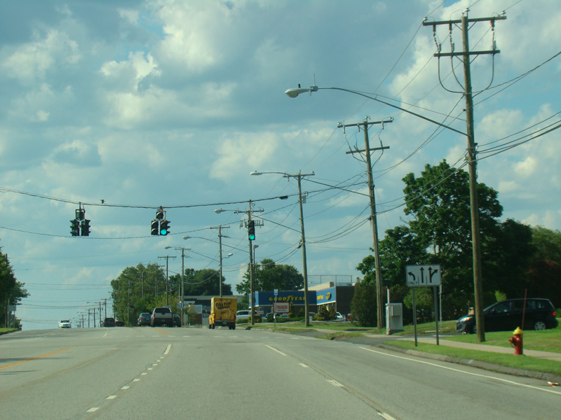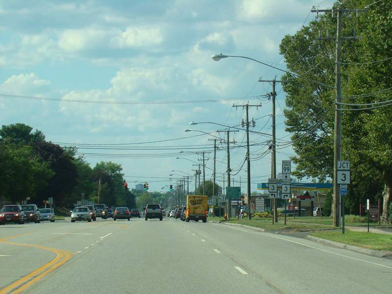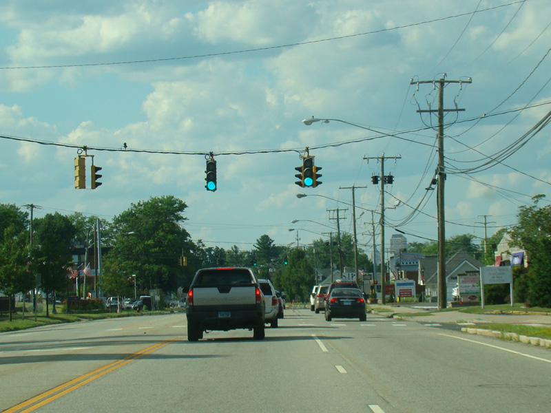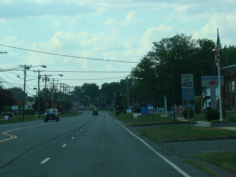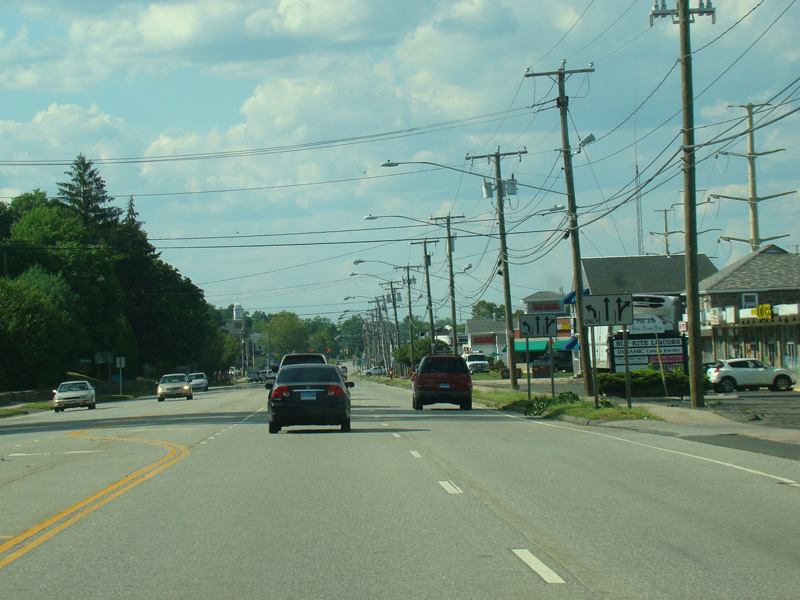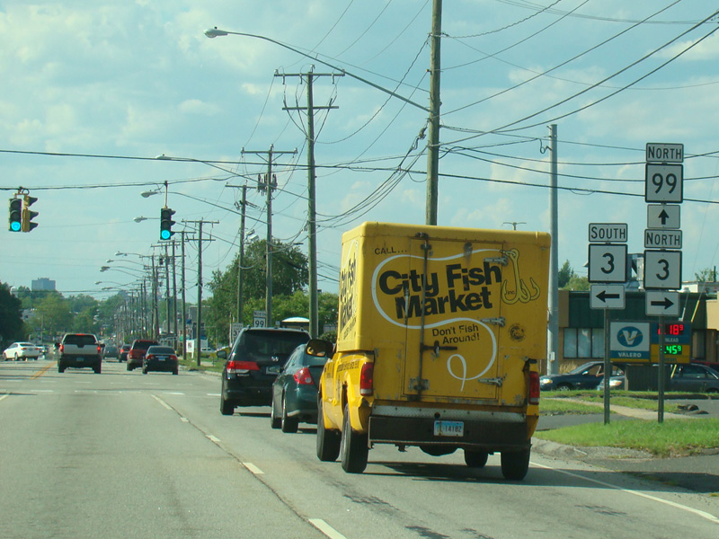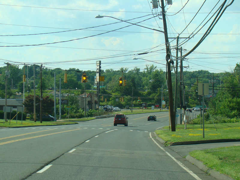 There is a traffic light at Maple Street (CT 3). Turn right to go north or left to go south.