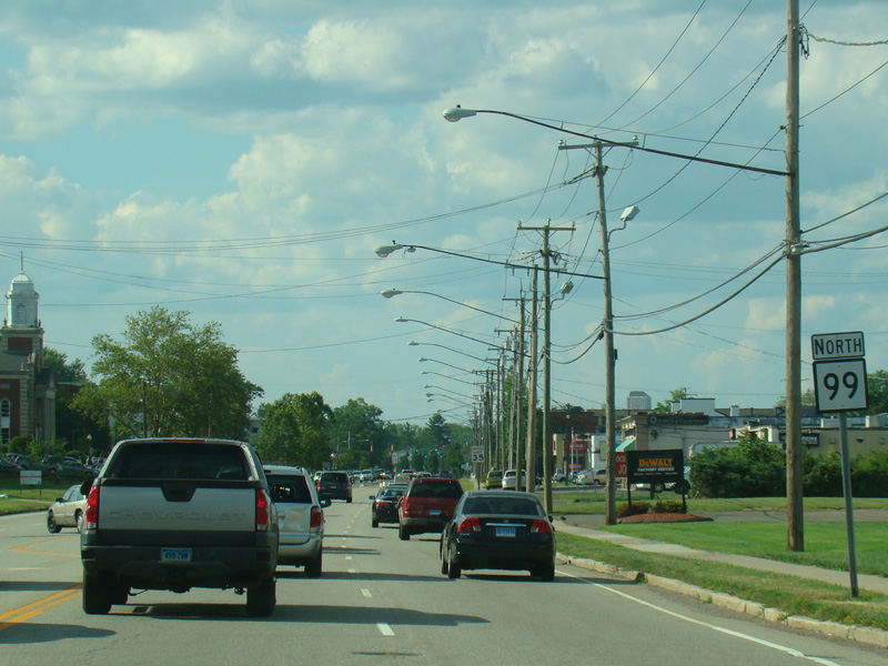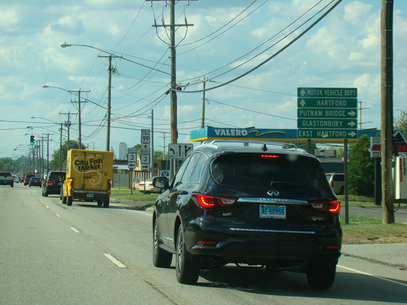 There is an interchange with the Wilbur Cross Highway (US 5/CT 15). Immediately thereafter, CT 99 ends at the Hartford city. Silas Deane Highway becomes Wethersfield Avenue.