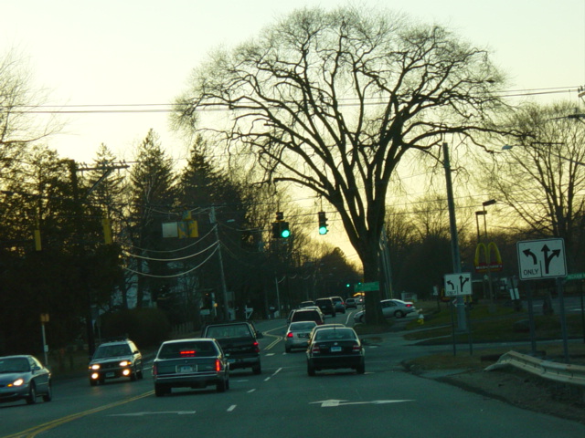 Spencer Plain Road (CT 166) begins on the right at this traffic light.