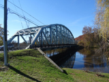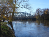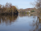 These pictures show the Veterans Memorial Bridge as observed from along the river bank in New Milford.