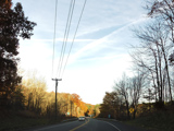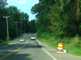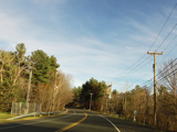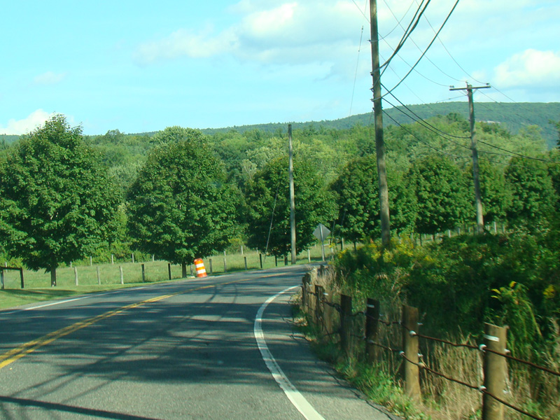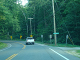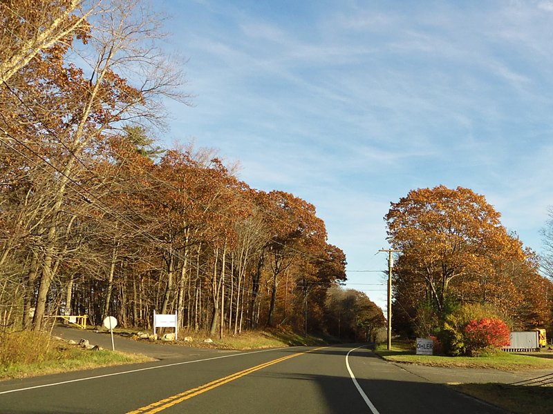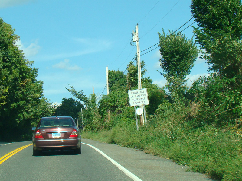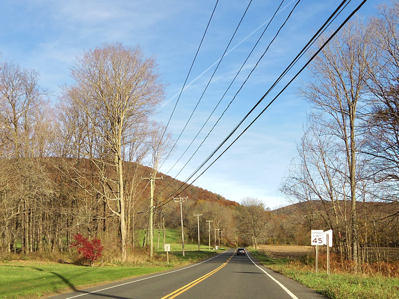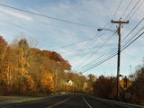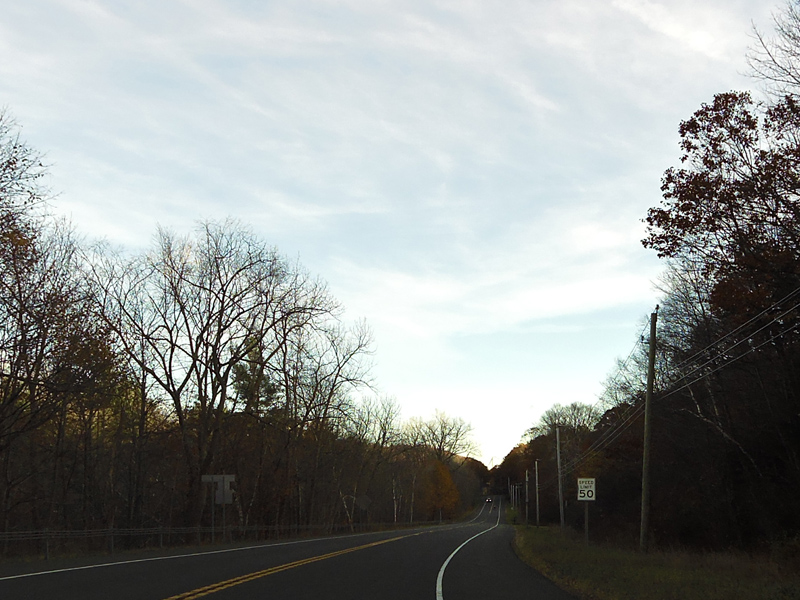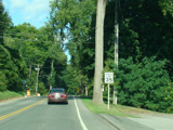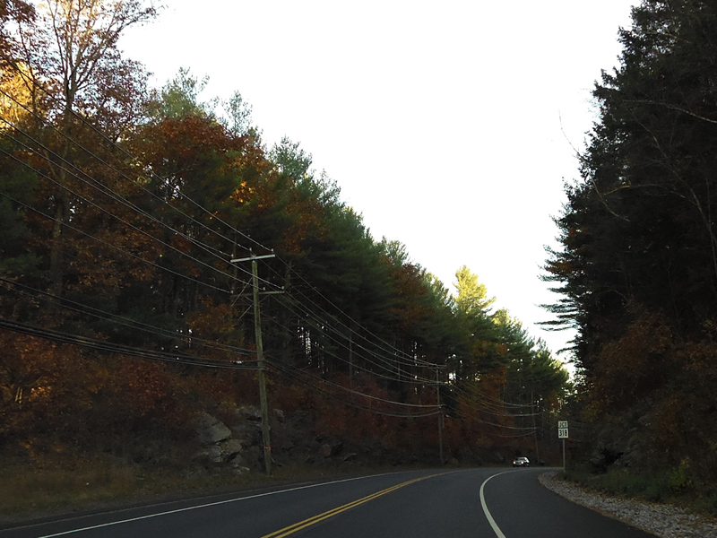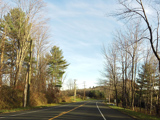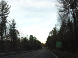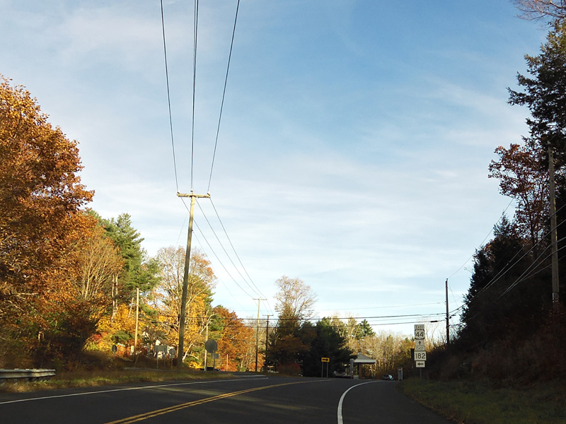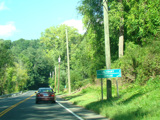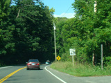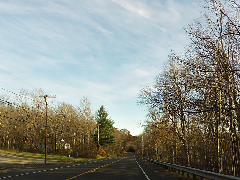Welcome to Connecticut! Millerton Road runs east as a two-lane undivided road.