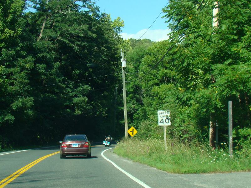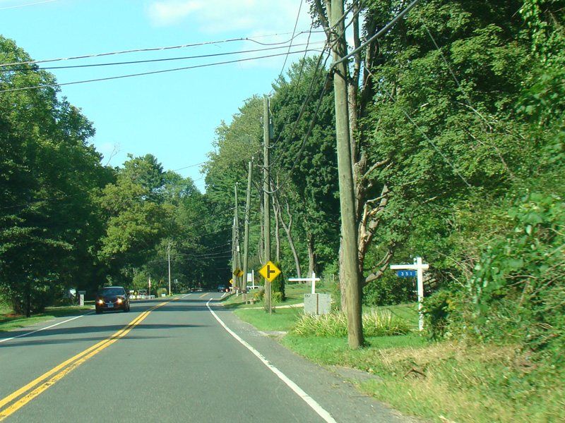 There is a traffic light at CT 219. Turn left onto Reservoir Road to go north. Turn right onto Town Hill Road to go south.