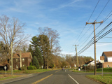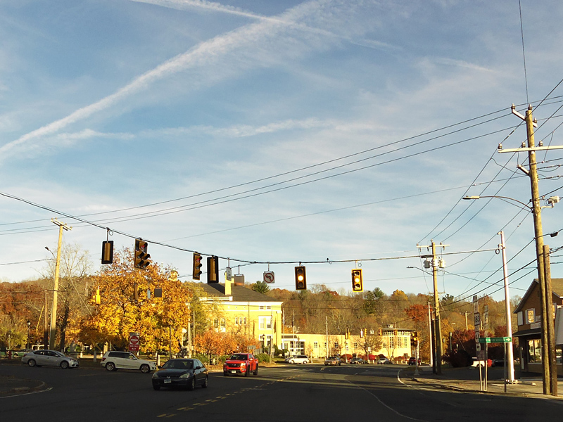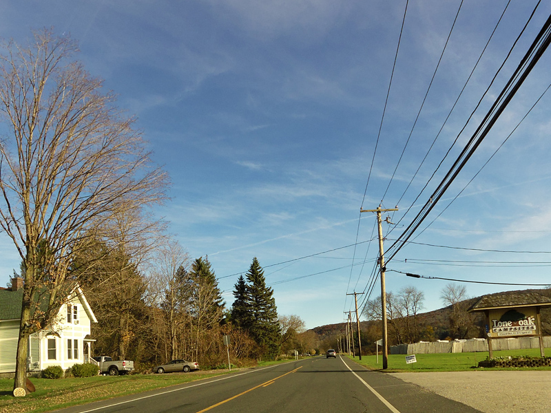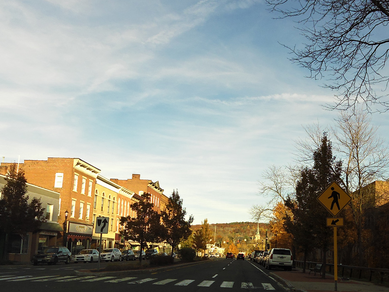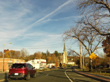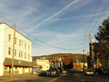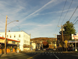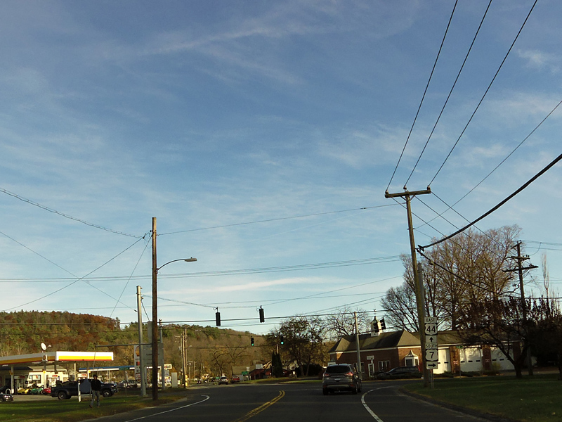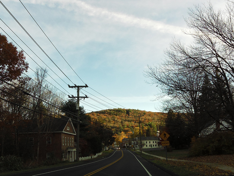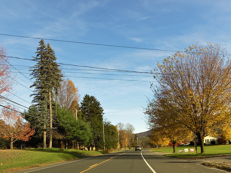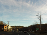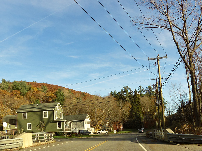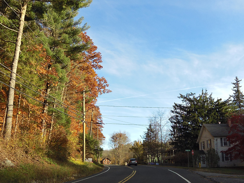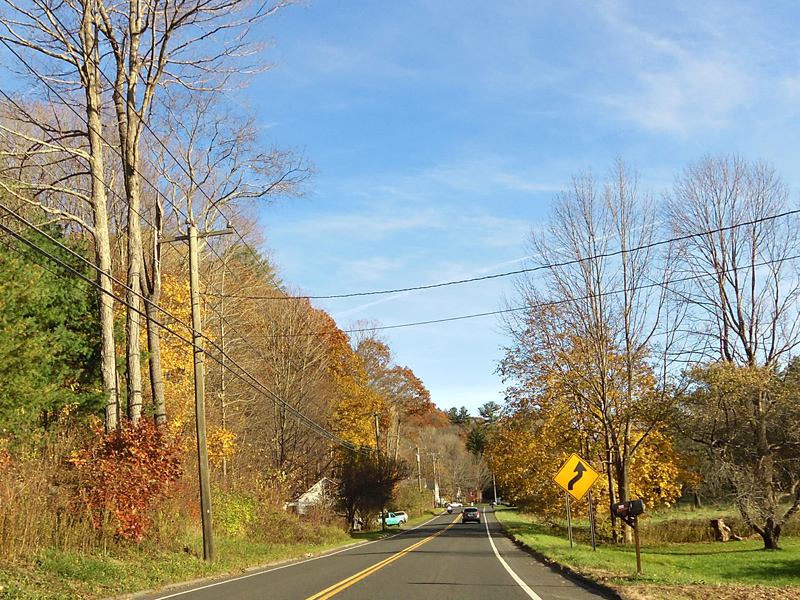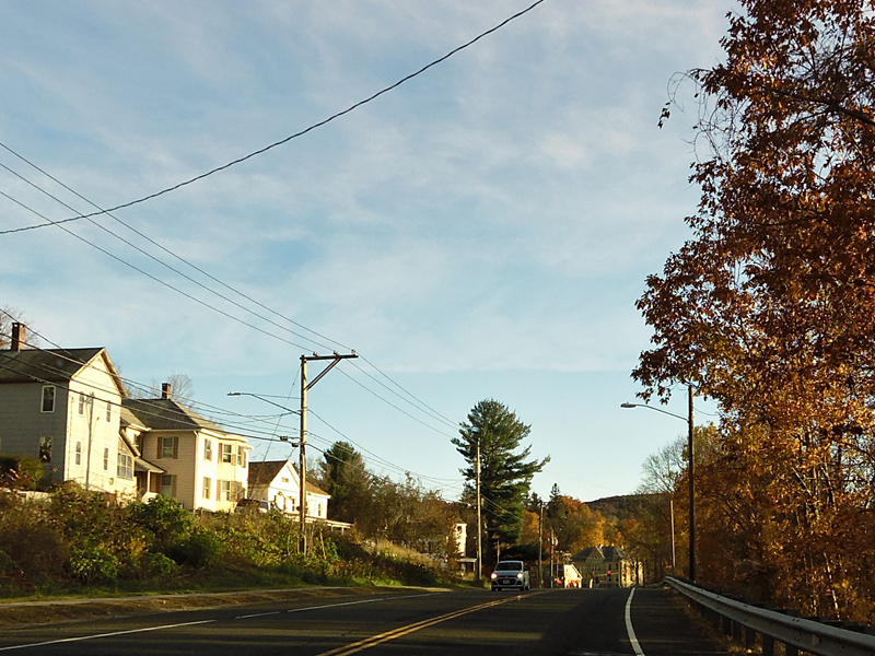 East Main Street changes names to become Canaan Road and runs east toward Canaan.