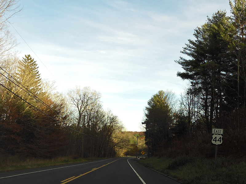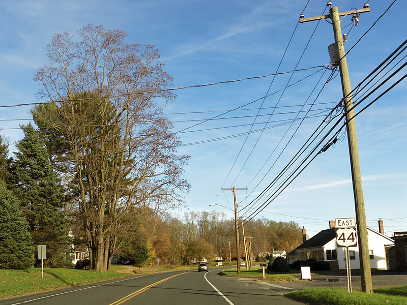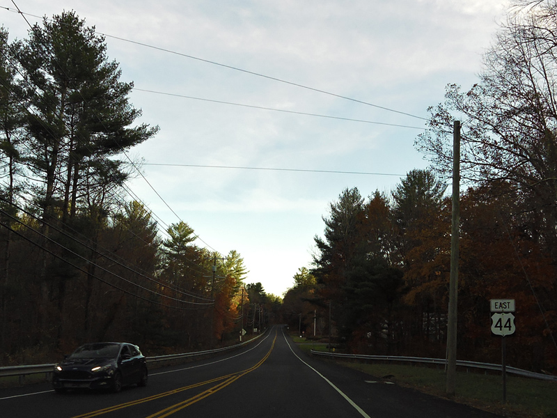 The two routes split. Turn right for Litchfield Road (CT 272). Bear left to stay on US 44.