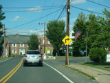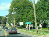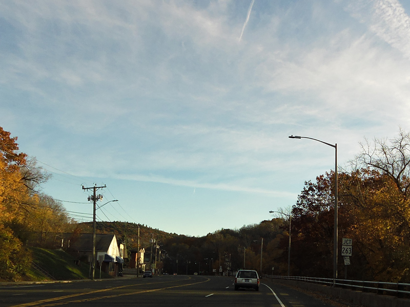 Main Street widens to four lanes. Lake Street (CT 263) begins on the right at a traffic light.