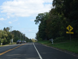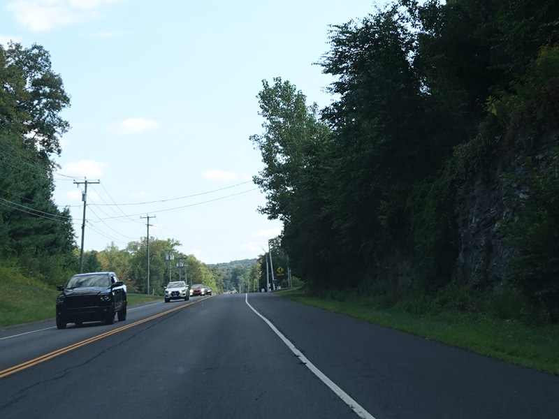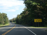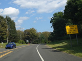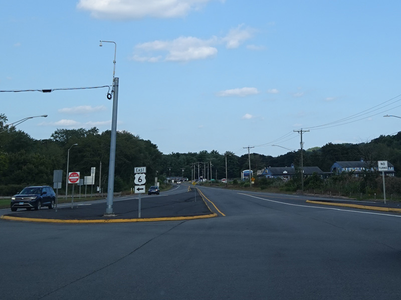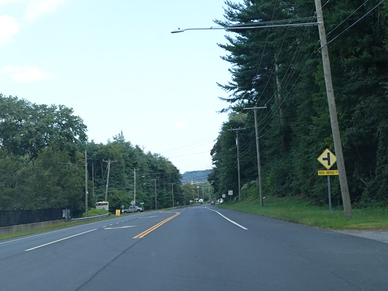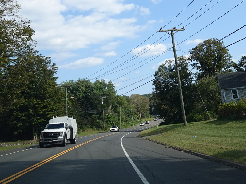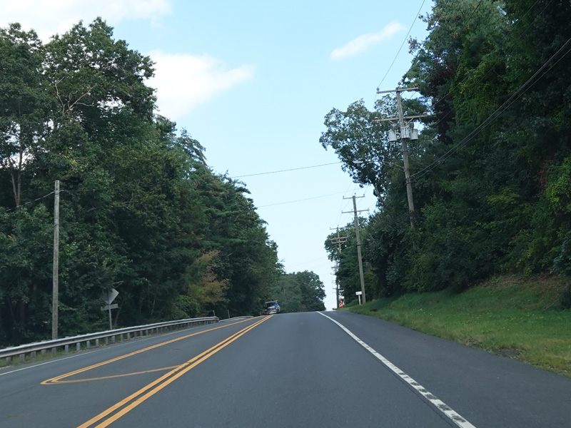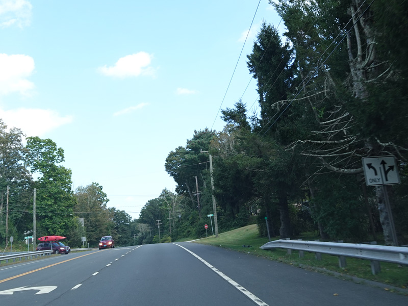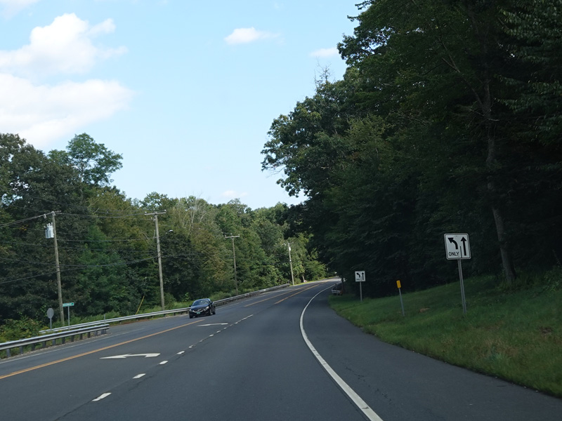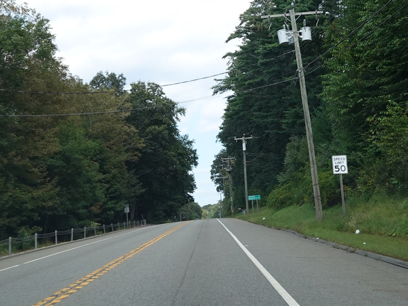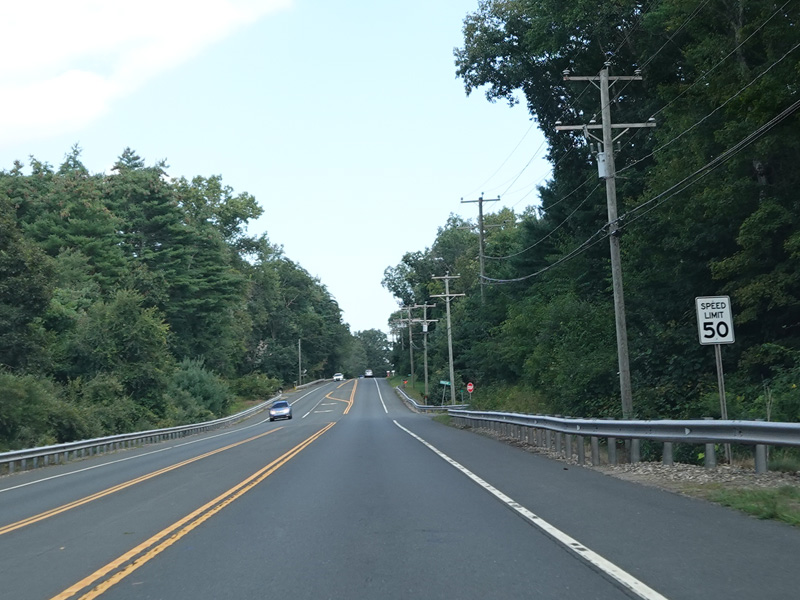 Skipping east to Bolton, US 6 splits off from US 44 just past the end of I-384. Here, it is known as Hop River Road. The speed limit goes up to 50 MPH. This is one of the few places in the state where the speed limit is so high on a surface road. Signs ask drivers to turn on their headlights at all times.