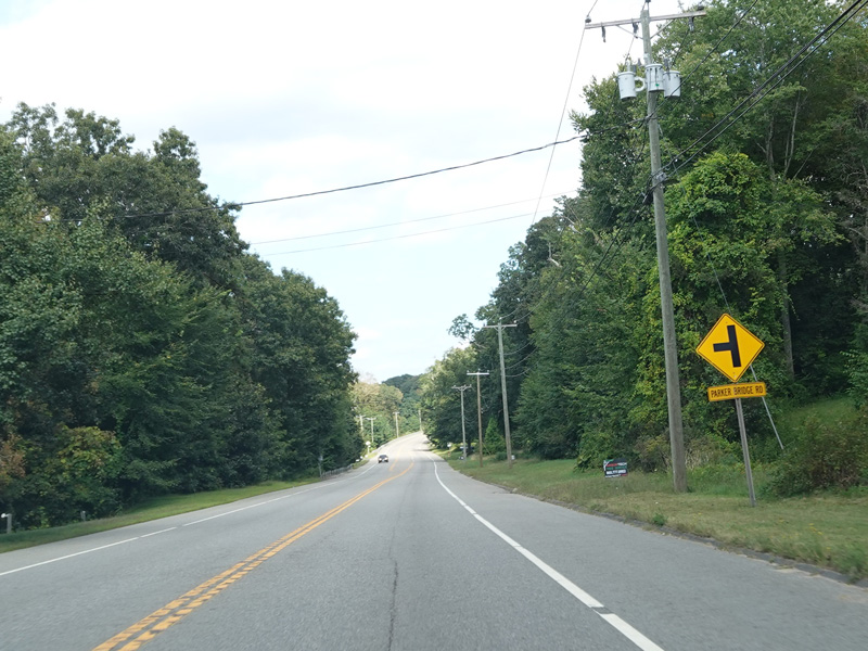 Willimantic Road runs east as a two-lane undivided road. Parker Bridge begins on the left.