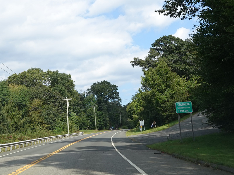 Welcome to Columbia! There are uncontrolled intersections at Woodward Road, Whitney Road, Oakwood Lane, Hop River Road, Strickland Road, Edgarton Road, and Rose Bridge Road.