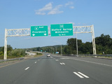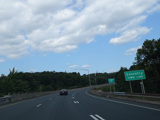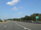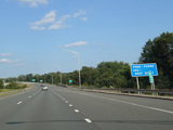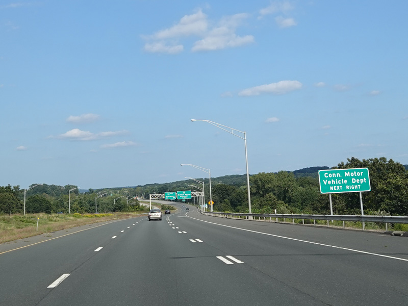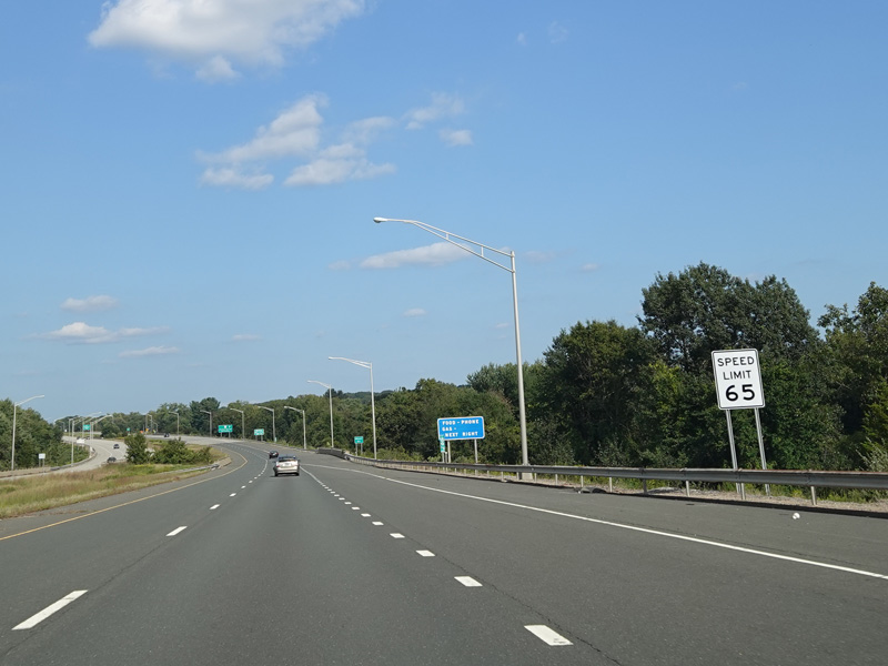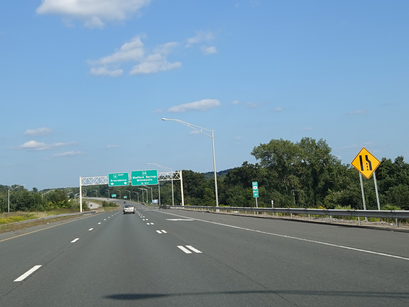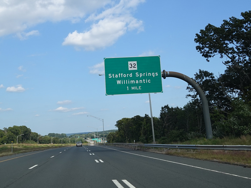 Welcome to Coventry! There is some advance signage for the exit for Main Street (CT 32) as the slow vehicle lane ends.