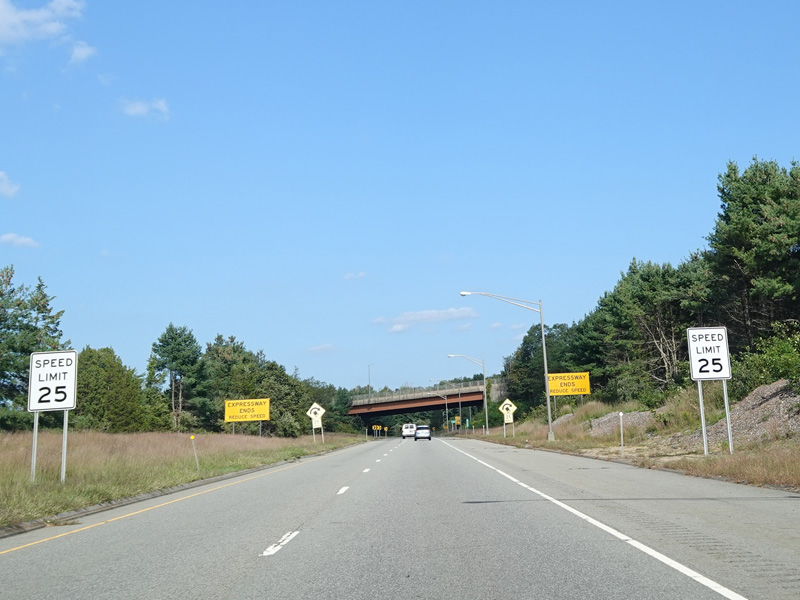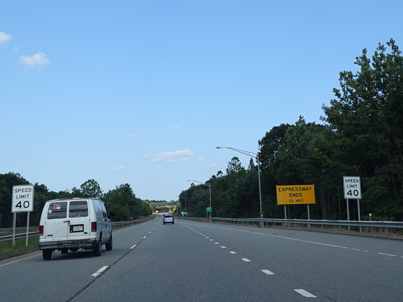 The speed limit drops to 40 MPH and then 25 MPH as the expressway ends.