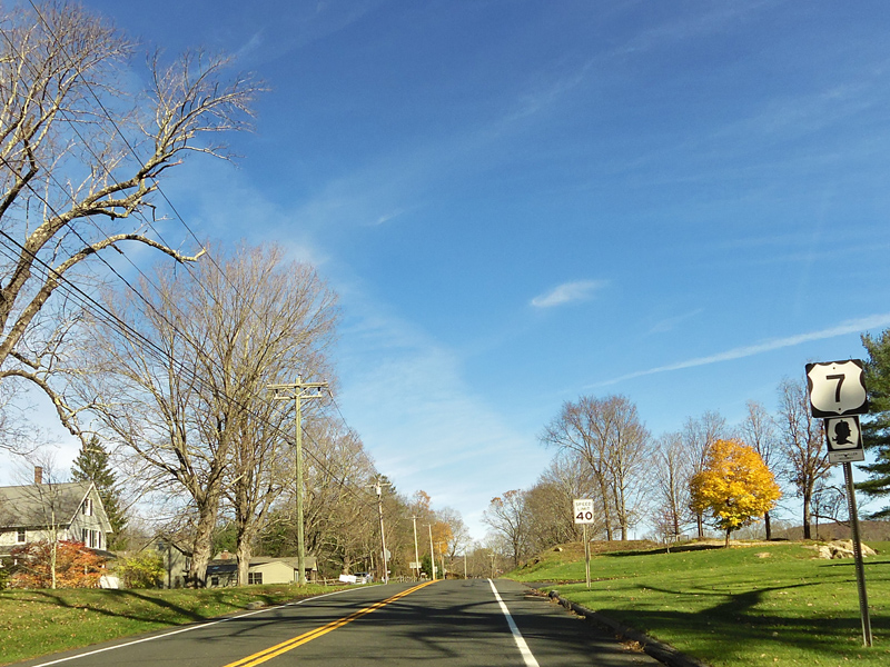 This Ethan Allen Highway shield was found just north of CT 126. It has been replaced with a standard US 7 reassurance shield.