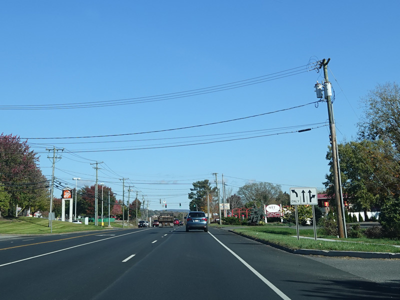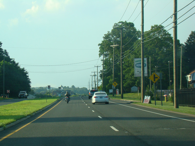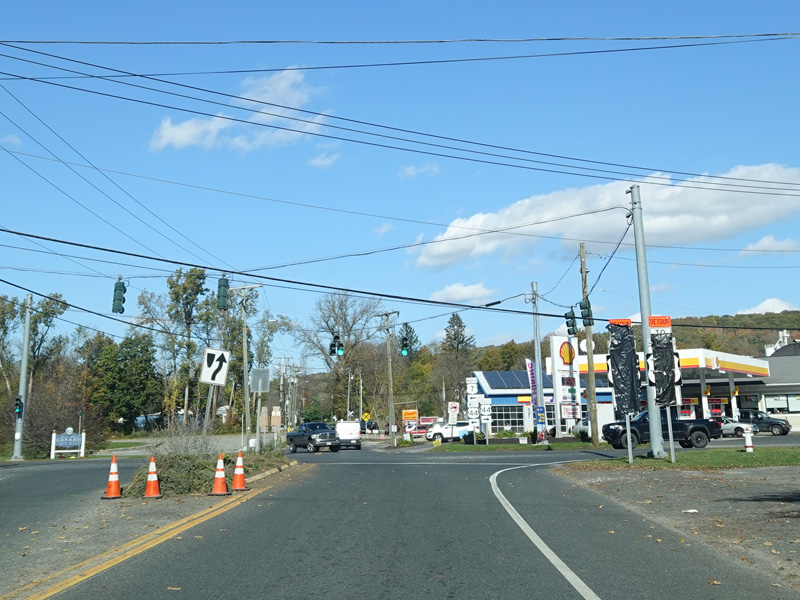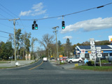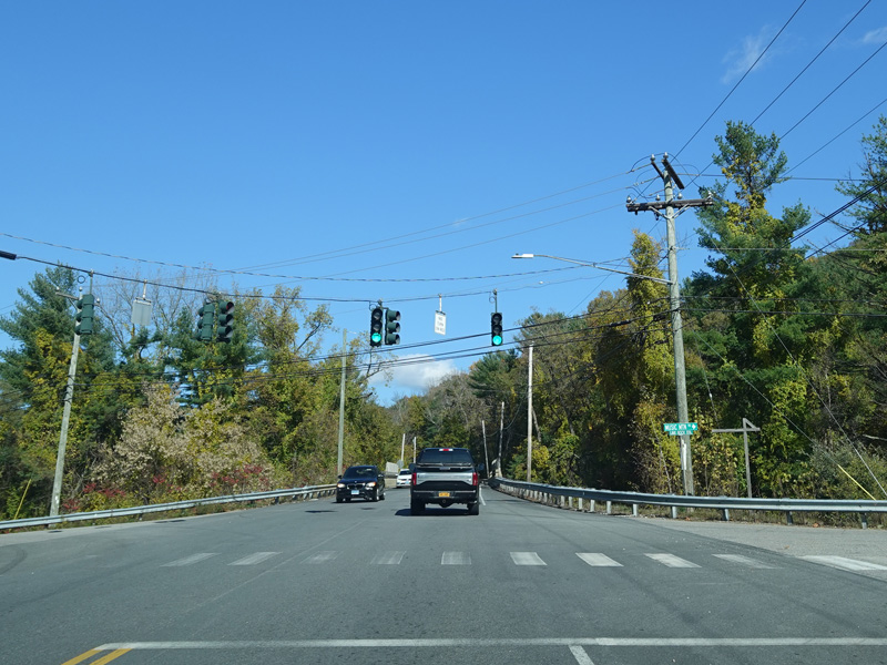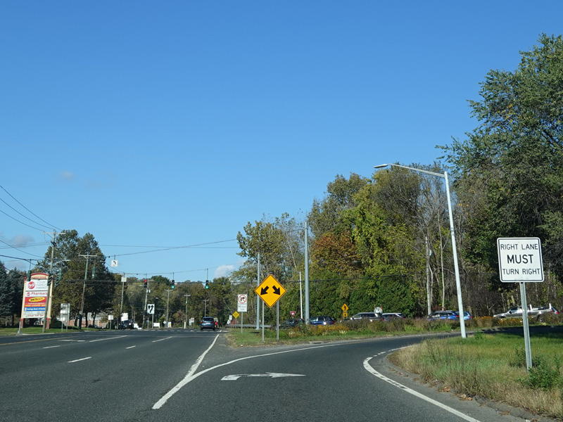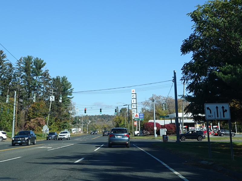 There is a traffic light at CT 341. Turn right onto Maple Street to go east or left onto Bridge Street to go west.