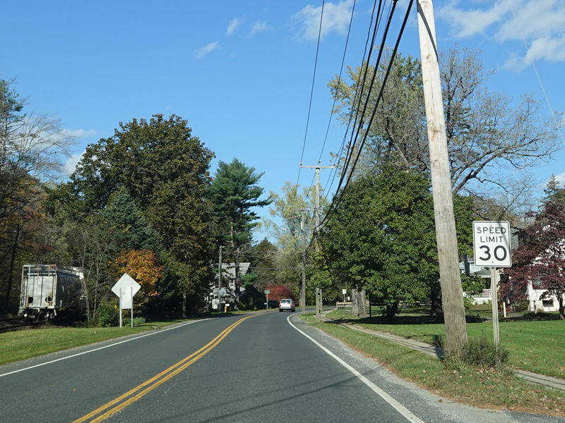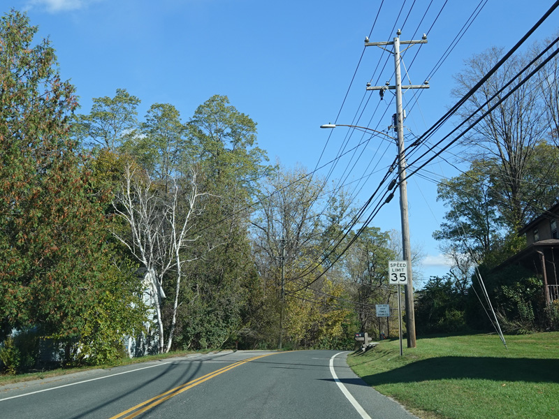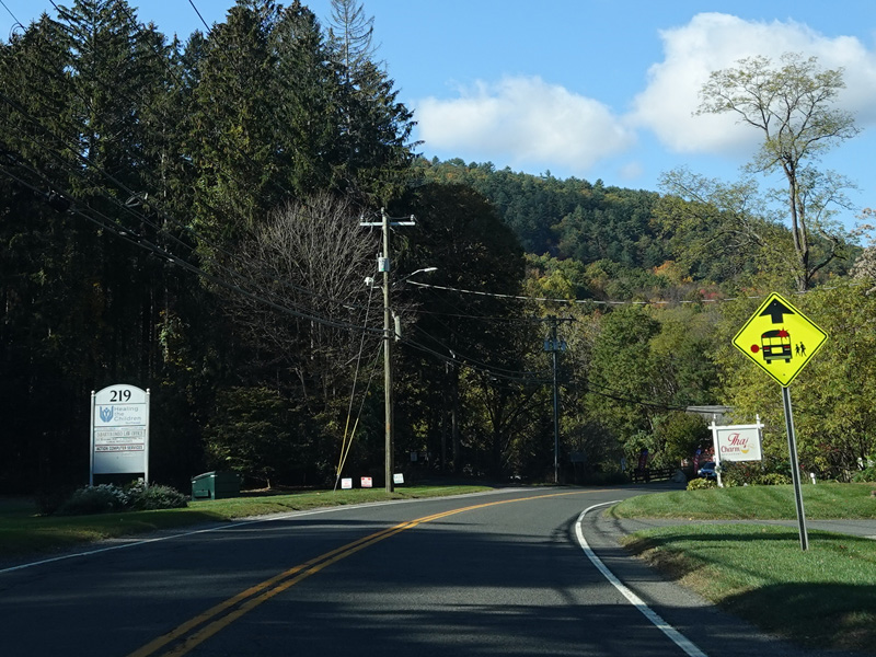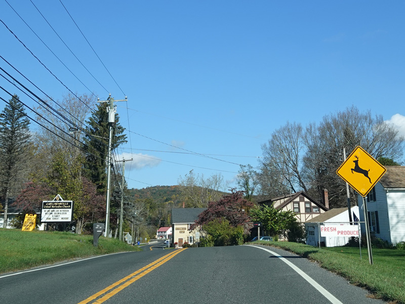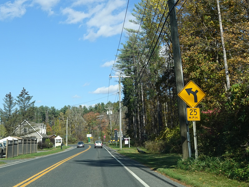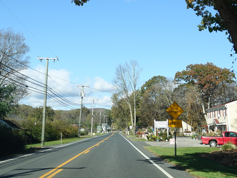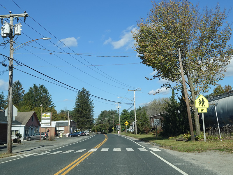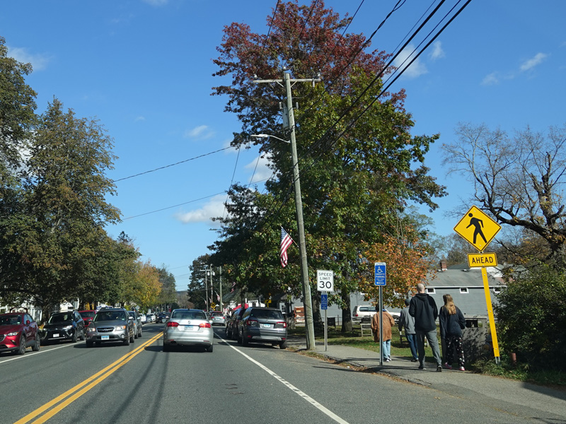 Welcome to Canaan! South Canaan Road changes names to become High Street and then Elm Street.