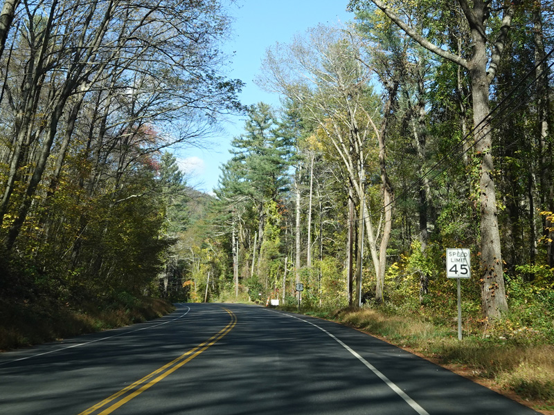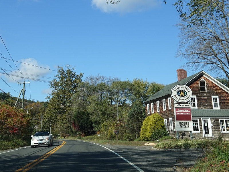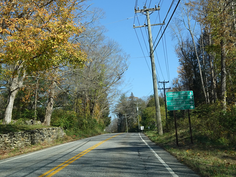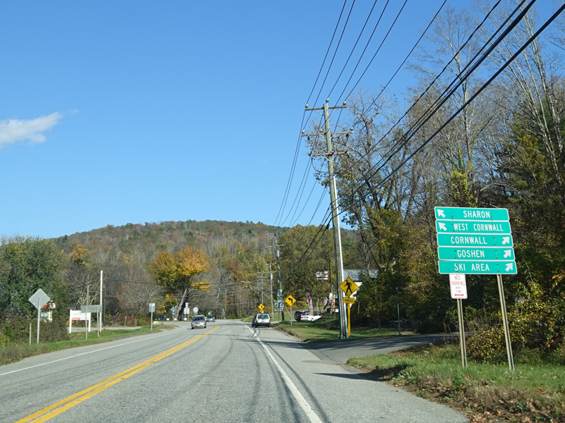 Sharon-Goshen Turnpike (CT 128) begins on the right.
