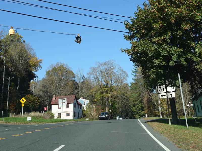 Sherman Road (CT 37) begins on the left at a flasher.