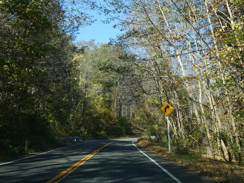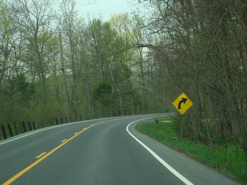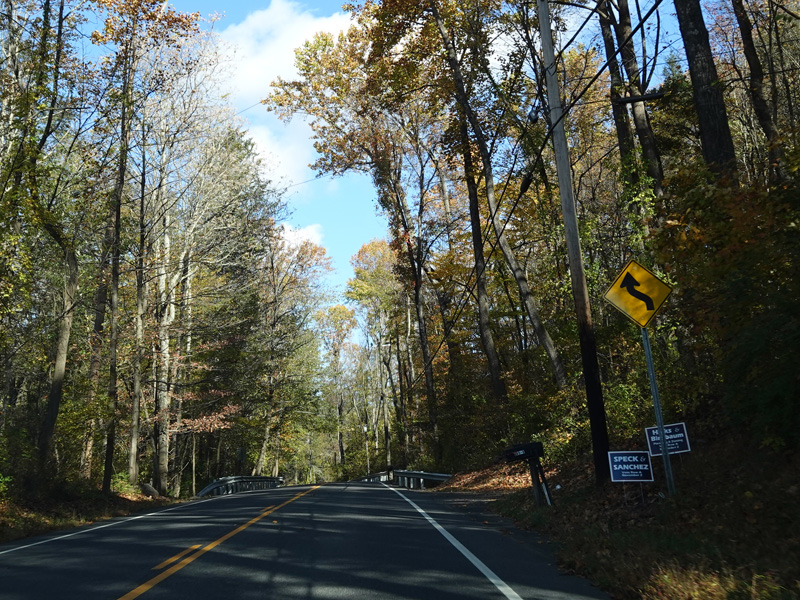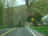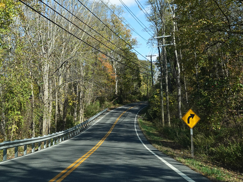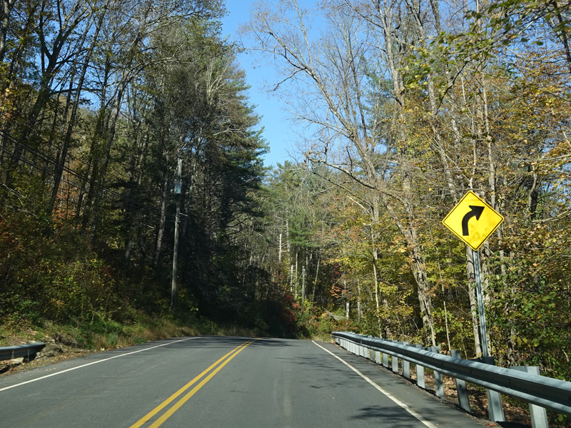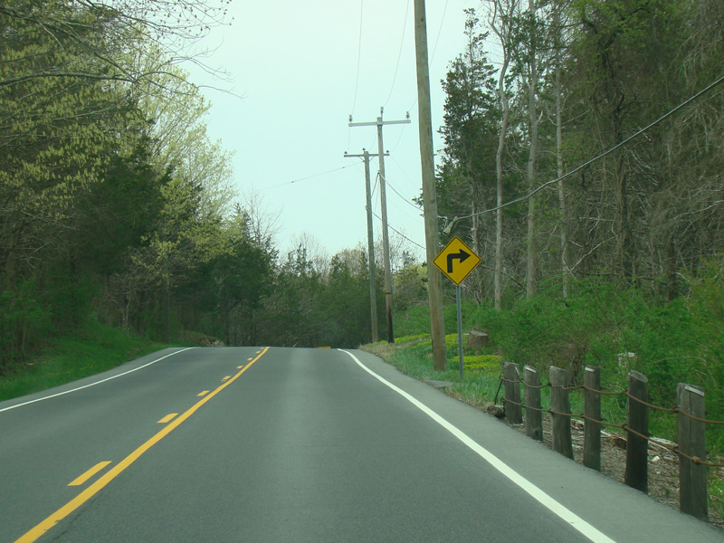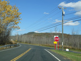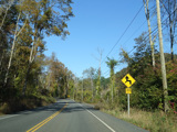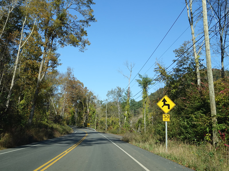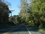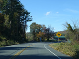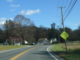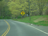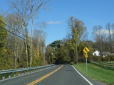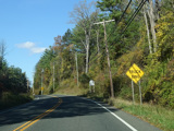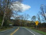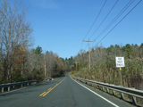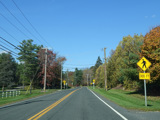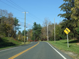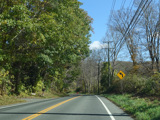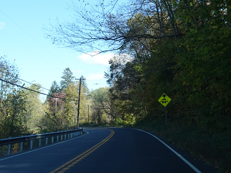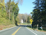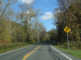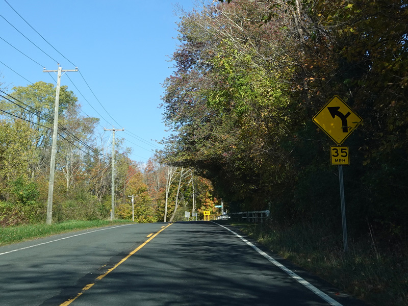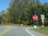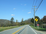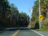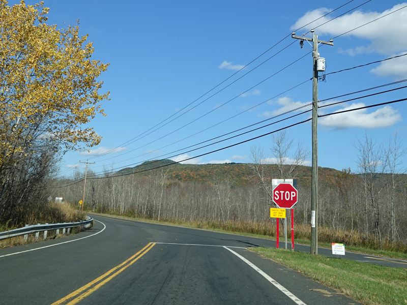 There is a stop sign as Huntsville-South Canaan Road (CT 63) merges with South Canaan Road.