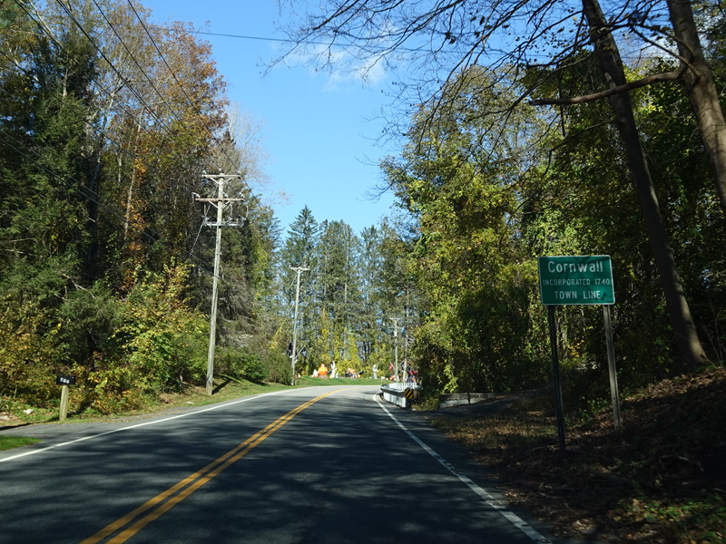 Kent-Cornwall Road ends at a stop sign at CT 4. Merge in straight ahead to go west and to stay on US 7. Bear right before the stop sign onto Furnace Brook Road to go east.
