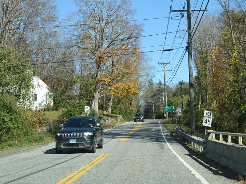 Warren Hill Road (CT 45) begins on the right.