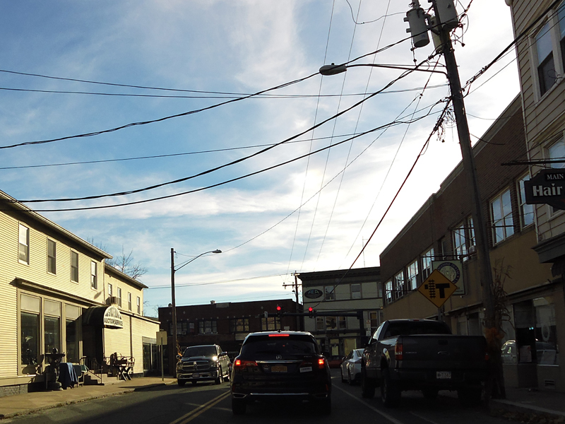 Railroad Street ends at a traffic light at Main Street (US 44). Turn left to go east and to stay on US 7. Turn right to go west.